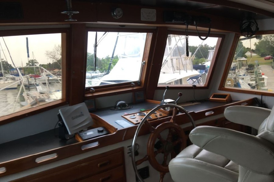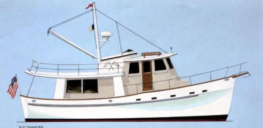 Stout long range pilothouse cruiser designed for offshore voyaging. Single Ford Lehman diesel and 700 gallon fuel capacity yields around 2000 mile range at 8 knots. Ballasted keel, 360 gallon water capacity. Beautiful teak interior gets you there in comfort and style.