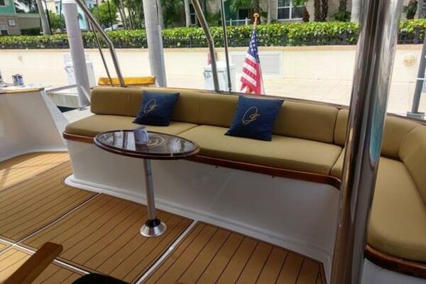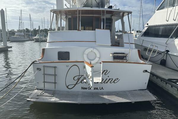 Queen Jeannine is a 57' cockpit version of the Island Gypsy 51, featuring a flybridge, walk-around decks, and a comfortable lounge area on the forward deck. Her classic trawler lines are paired with modern comfort and numerous upgrades that make her an exceptional long-range cruiser or liveaboard.