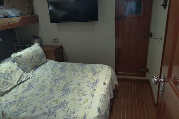 Powered by twin Volvo Penta TAMD61A diesels (repowered 1995) and supported by two generators, Queen Jeannine delivers reliable performance and onboard autonomy. She features five Webasto air conditioning units with heat, two water heaters, and updated 120/240V AC systems with isolation transformers and new main breakers.