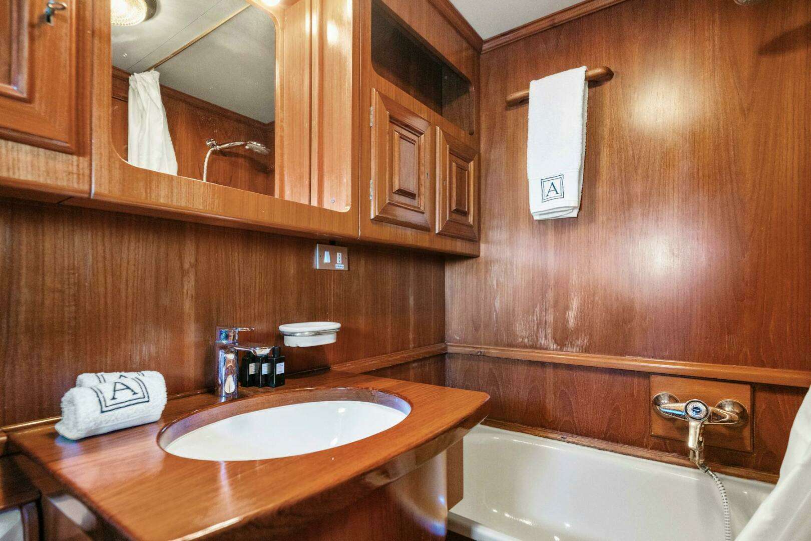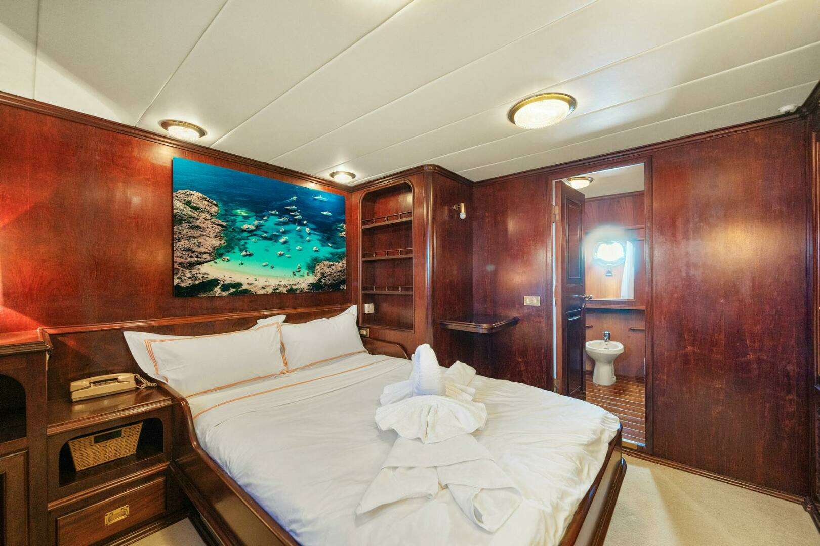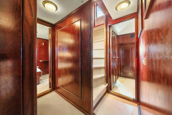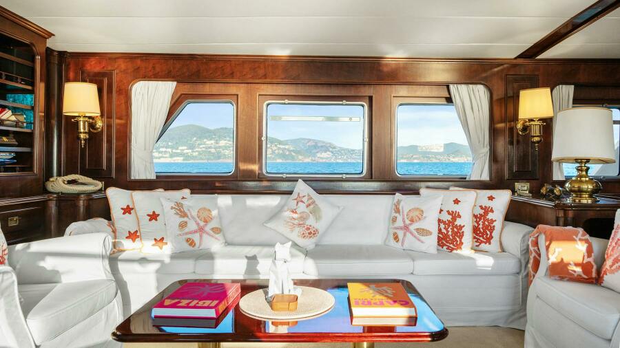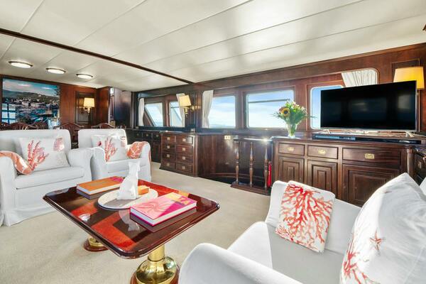 AMMIRAGLIO (built in 1982) is a meticulously maintained classic yacht, offering luxurious accommodations for up to 8 guests across 4 spacious cabins, each with its own en suite bathroom. With generous exterior deck spaces, AMMIRAGLIO is the ideal family cruiser. Her timeless mahogany interior, lovingly preserved by her previous two owners, reflects the elegance of her era.