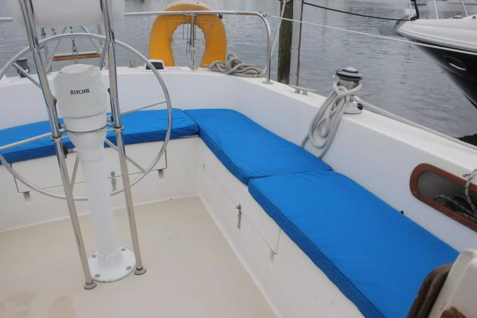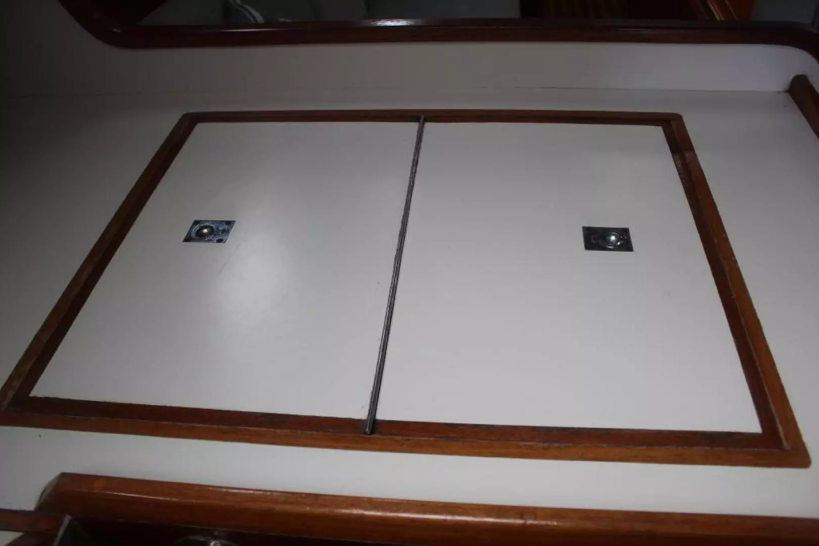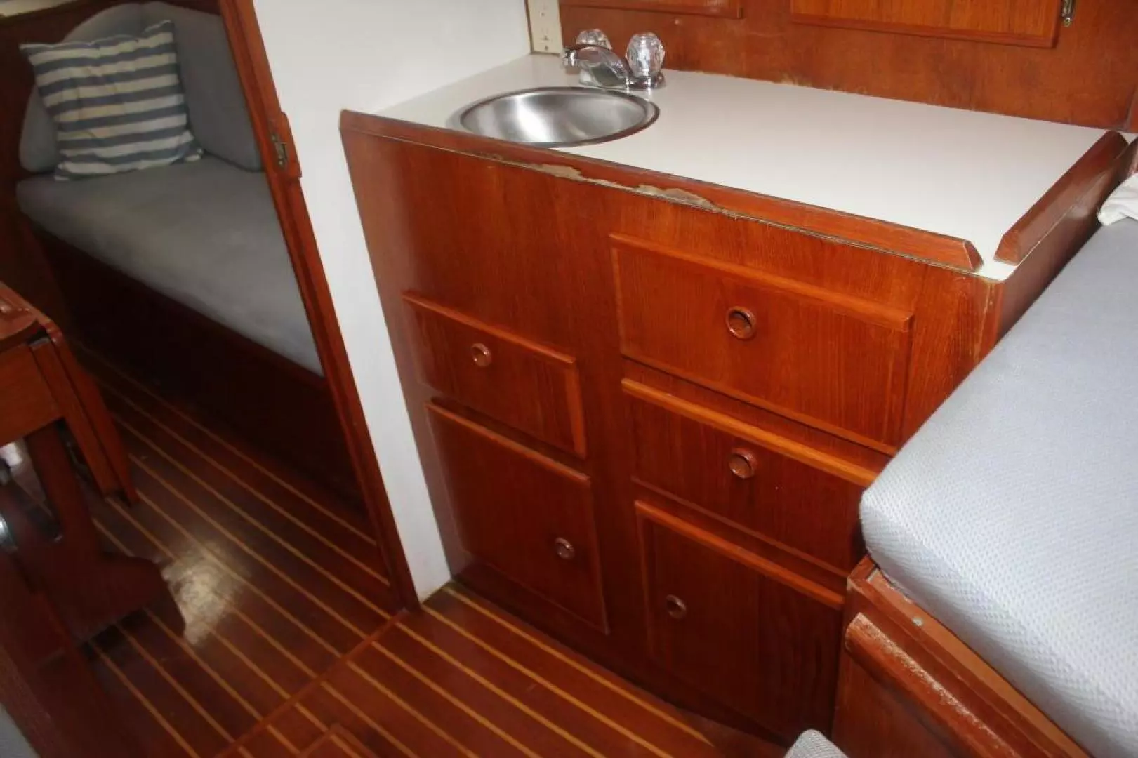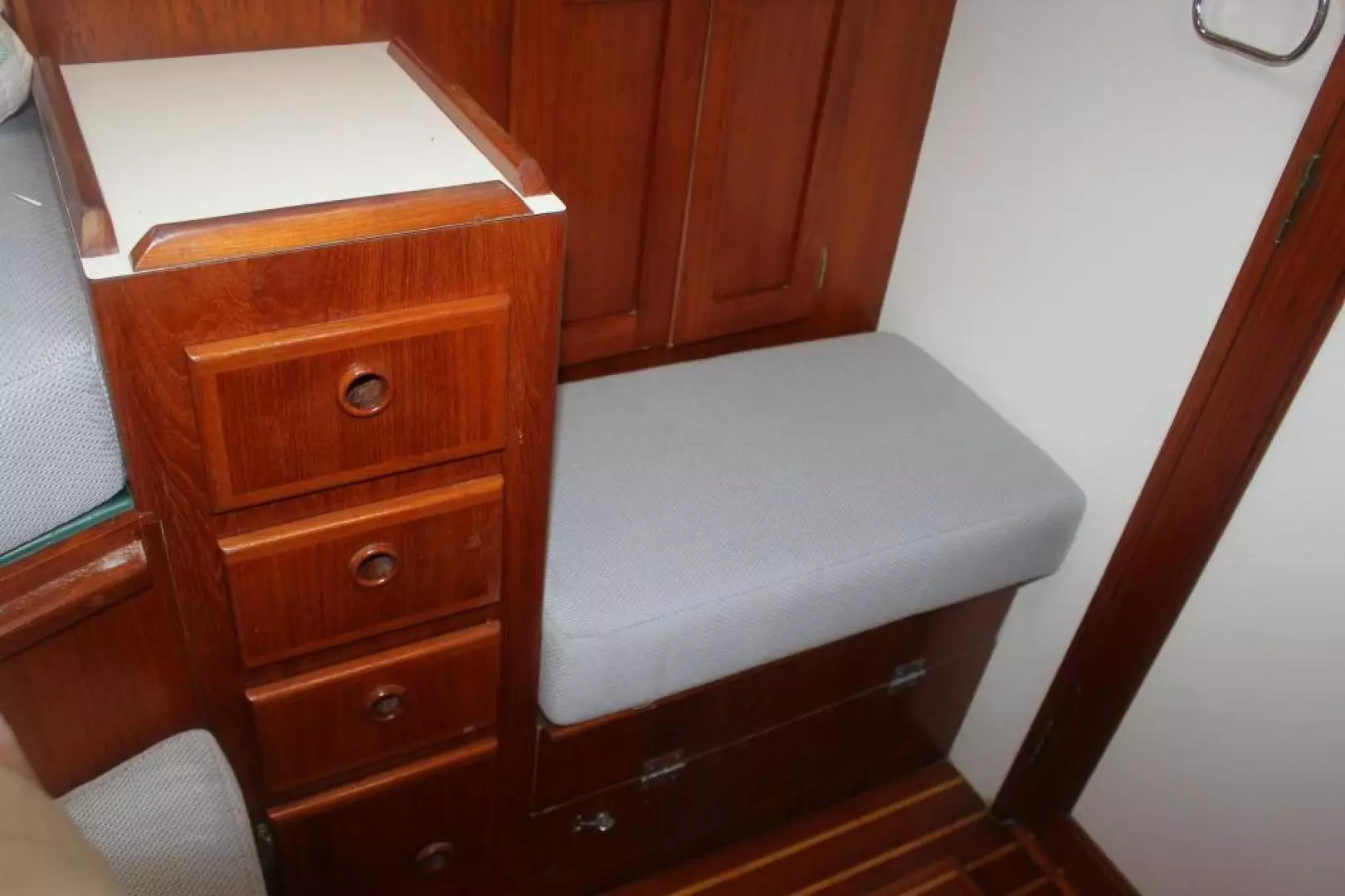 Raeven II is an original owner cutter rigged Pearson 424 with a two berth, two head layout. When entering below deck the Nav Station is to starboard with a double berth to port. Forward to port is the U-shaped galley. There is a second deck access across from the galley to starboard. She has port and starboard settees with a centerline fold down table. Forward is the main cabin consisting of a centerline V-berth with a filler, wash stand to port and a concealed marine head to starboard. The main head with shower is just forward of the Nav Station. She a full compliment of sails and her auxiliary power is a 2010 55-HP Yanmar diesel with less than 100 hours. Check out the Full Specs and call for an appointment to see her. She is located in Greenport NY.