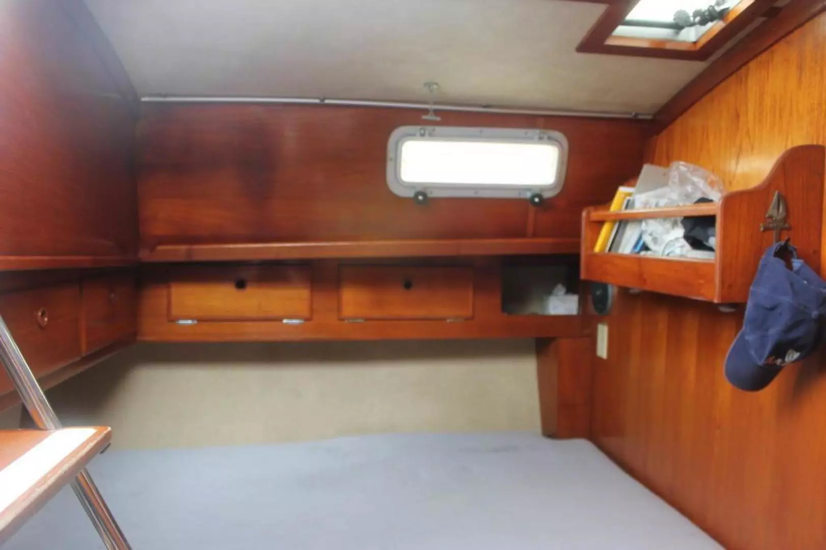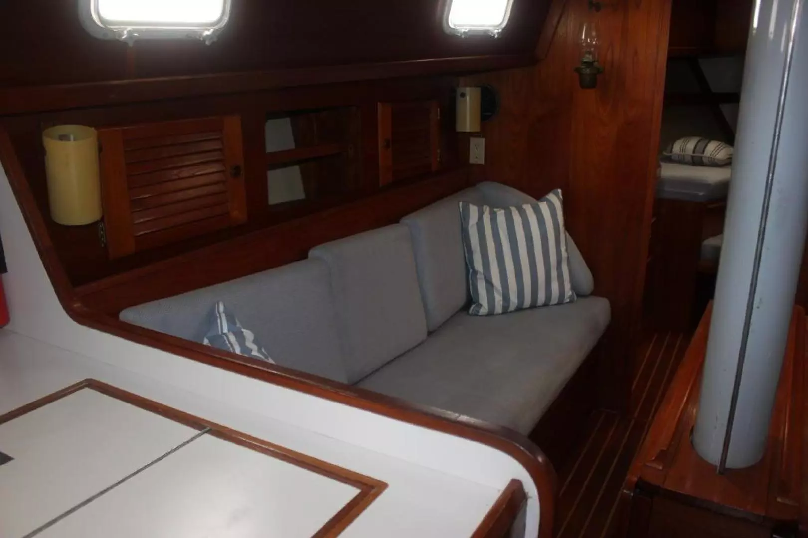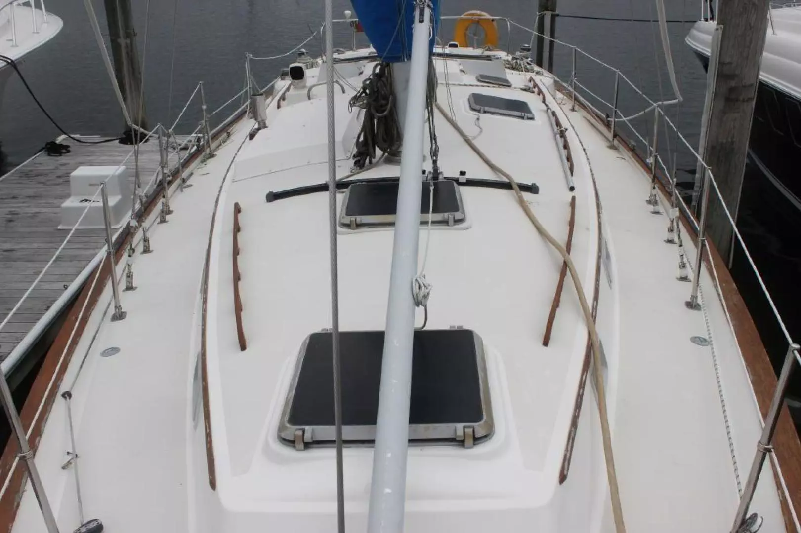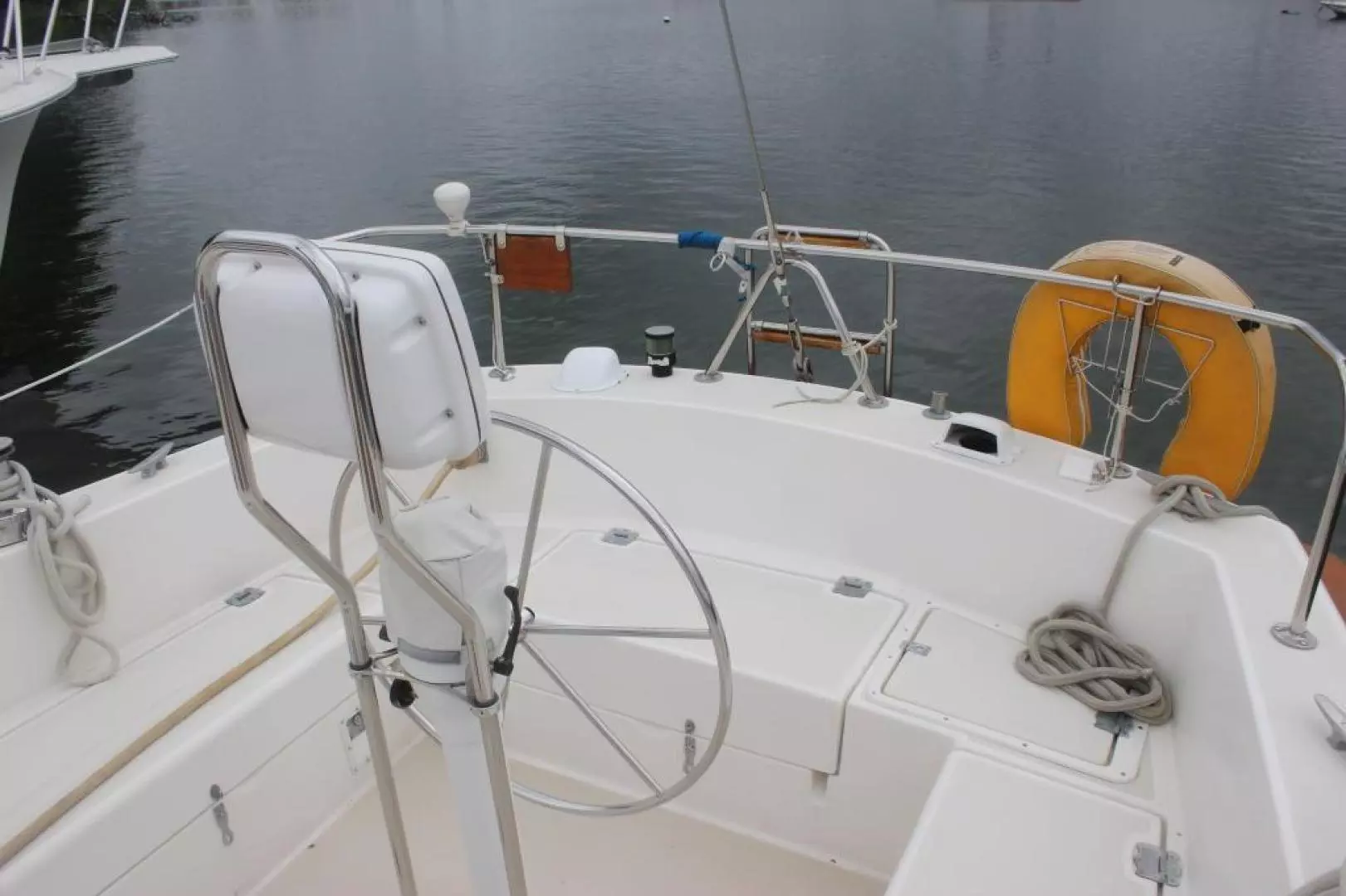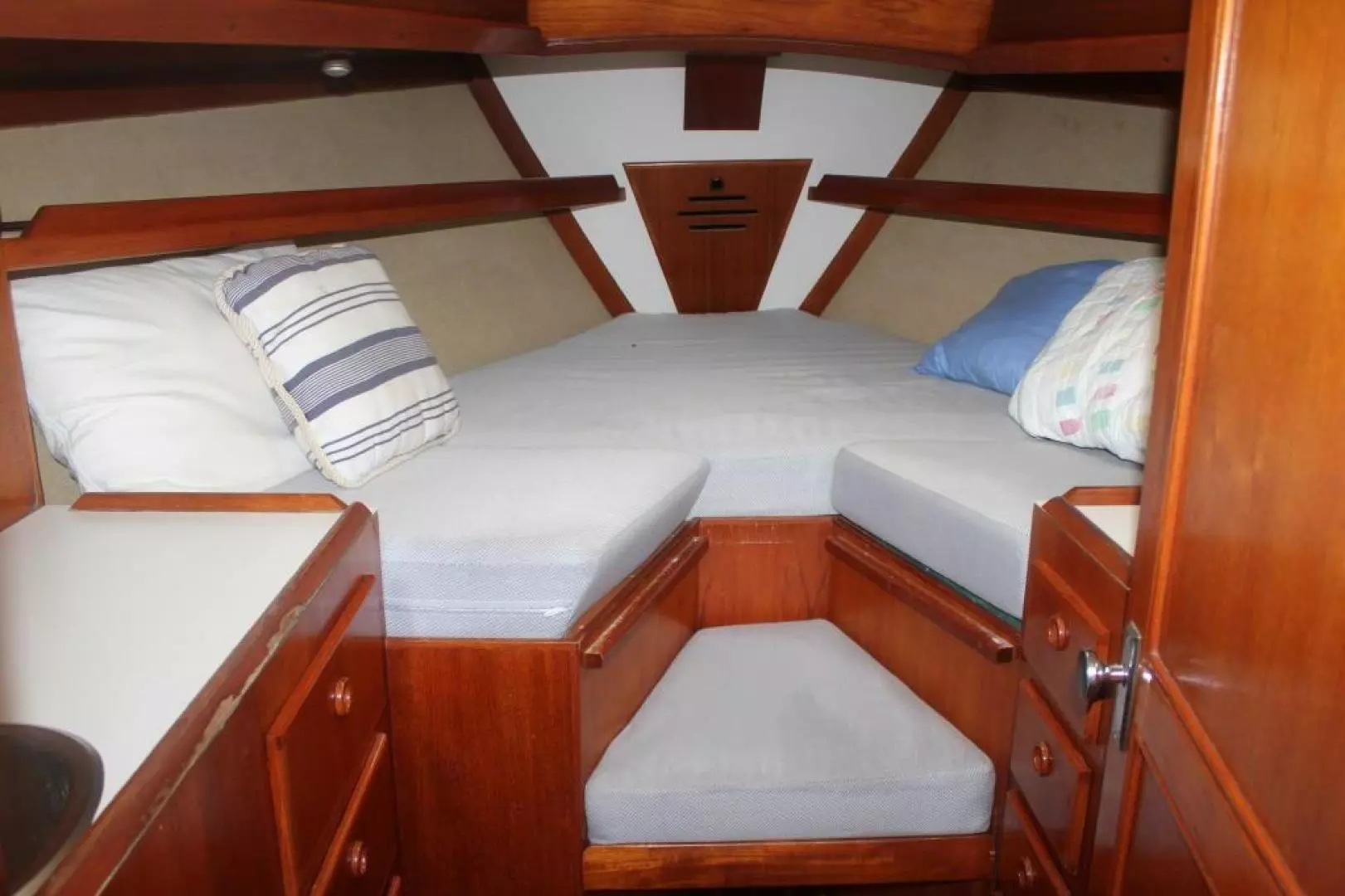 Raeven II is an original owner cutter rigged Pearson 424 with a two berth, two head layout. When entering below deck the Nav Station is to starboard with a double berth to port. Forward to port is the U-shaped galley. There is a second deck access across from the galley to starboard. She has port and starboard settees with a centerline fold down table. Forward is the main cabin consisting of a centerline V-berth with a filler, wash stand to port and a concealed marine head to starboard. The main head with shower is just forward of the Nav Station. She a full compliment of sails and her auxiliary power is a 2010 55-HP Yanmar diesel with less than 100 hours. Check out the Full Specs and call for an appointment to see her. She is located in Greenport NY.