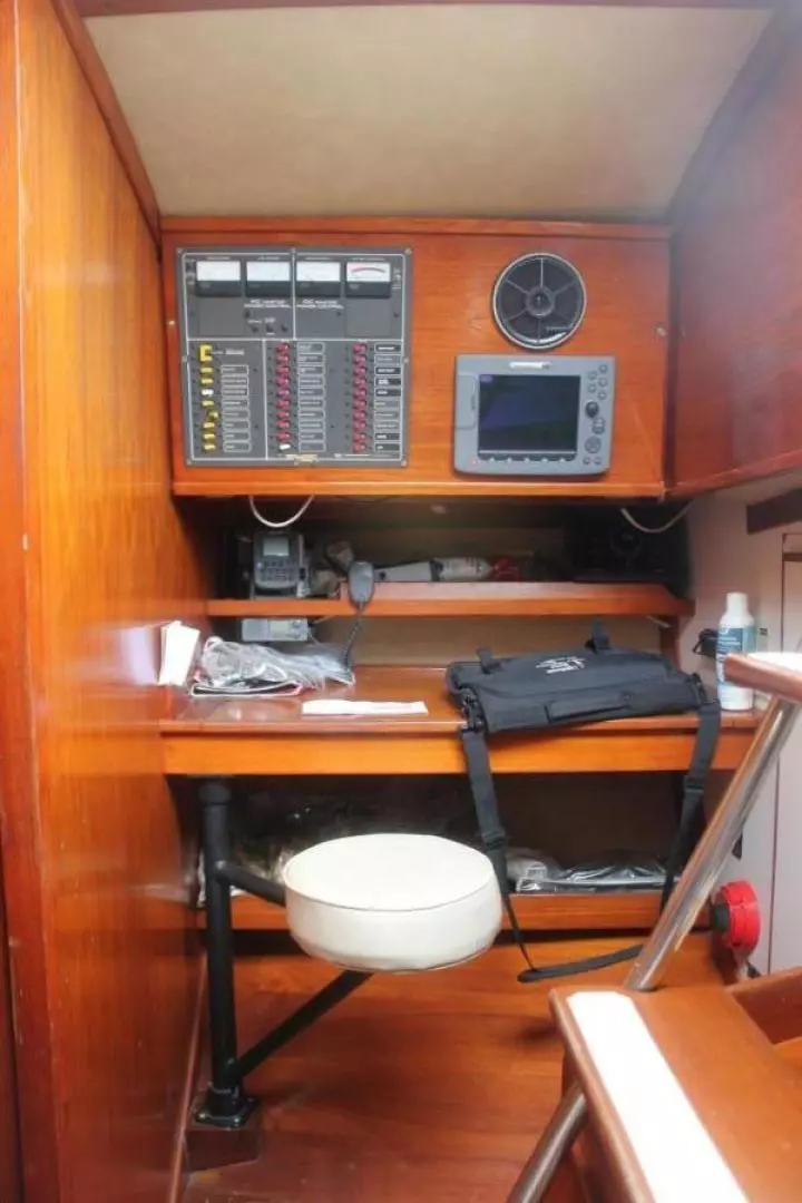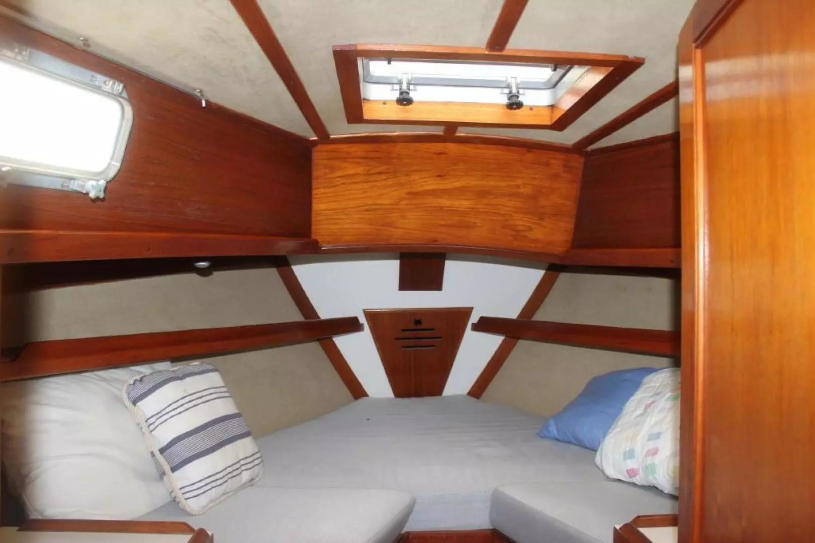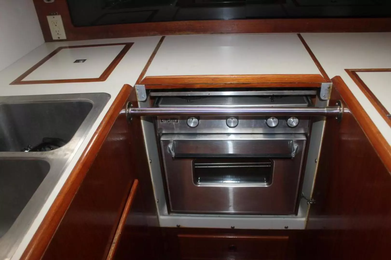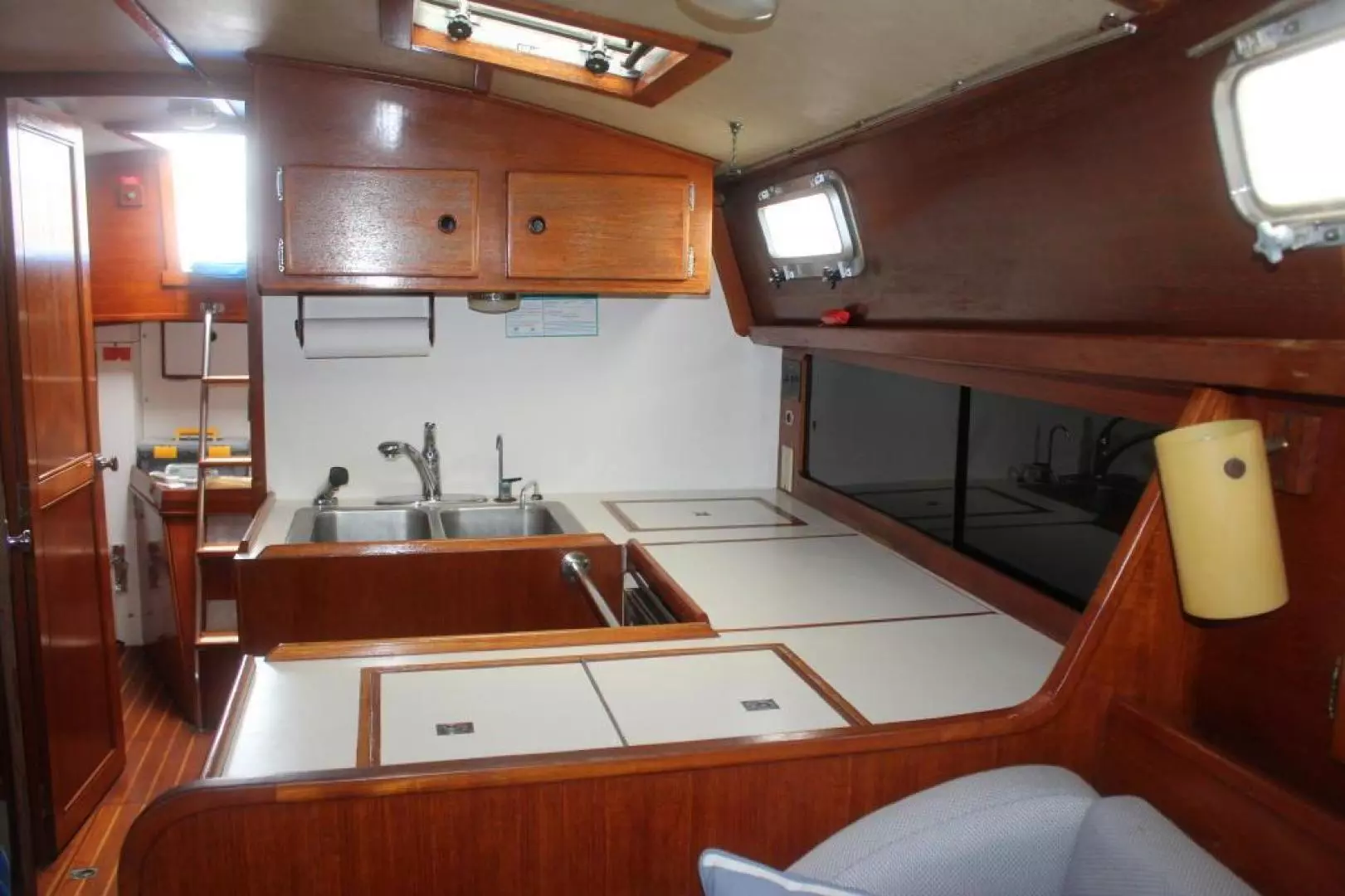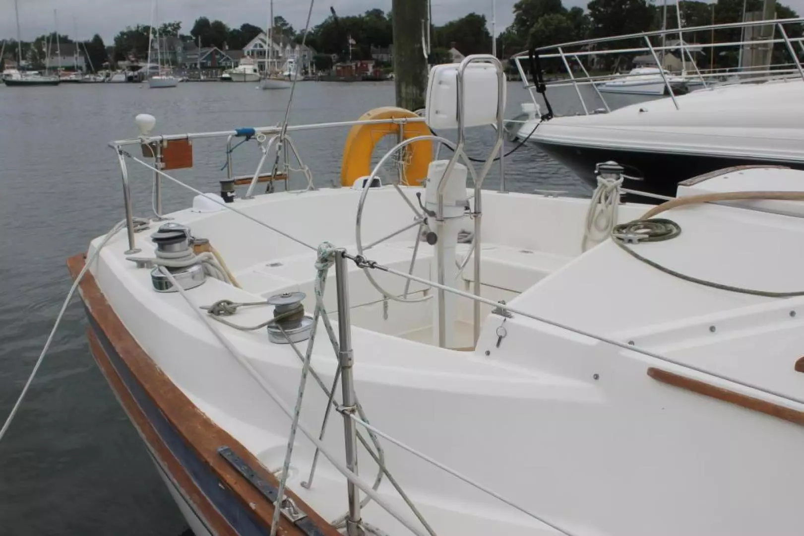Raeven II is an original owner cutter rigged Pearson 424 with a two berth, two head layout. When entering below deck the Nav Station is to starboard with a double berth to port. Forward to port is the U-shaped galley. There is a second deck access across from the galley to starboard. She has port and starboard settees with a centerline fold down table. Forward is the main cabin consisting of a centerline V-berth with a filler, wash stand to port and a concealed marine head to starboard. The main head with shower is just forward of the Nav Station. She a full compliment of sails and her auxiliary power is a 2010 55-HP Yanmar diesel with less than 100 hours. Check out the Full Specs and call for an appointment to see her. She is located in Greenport NY.