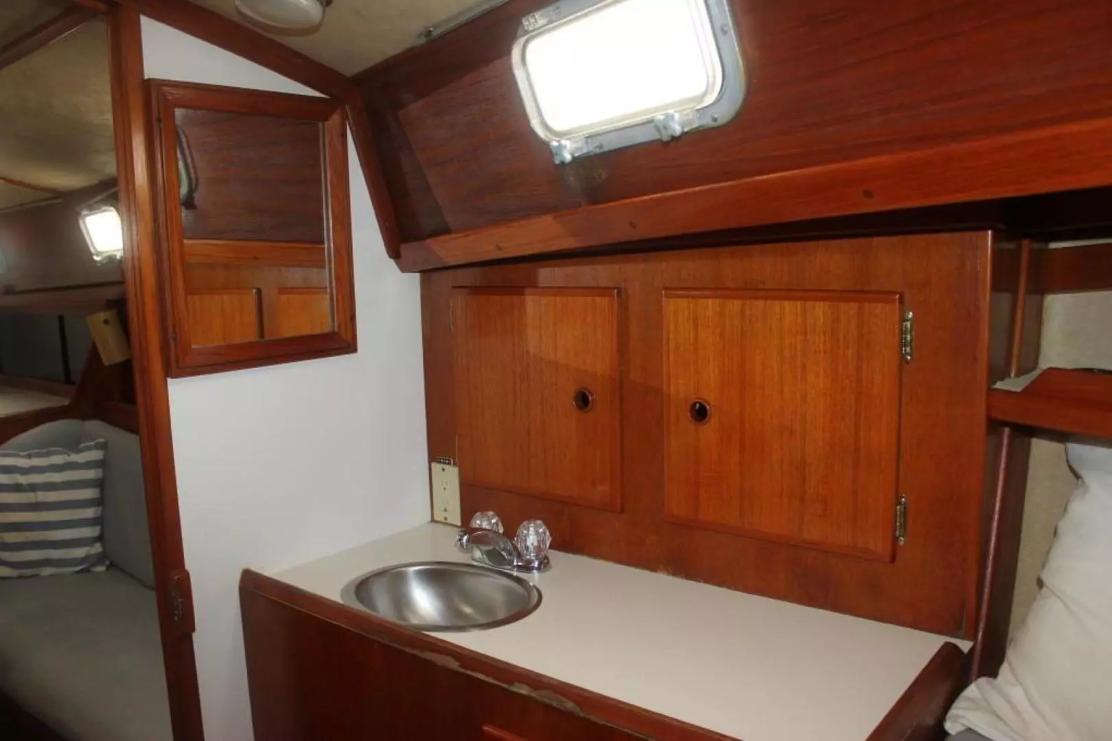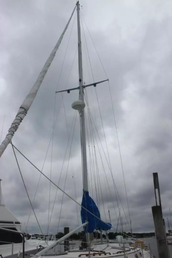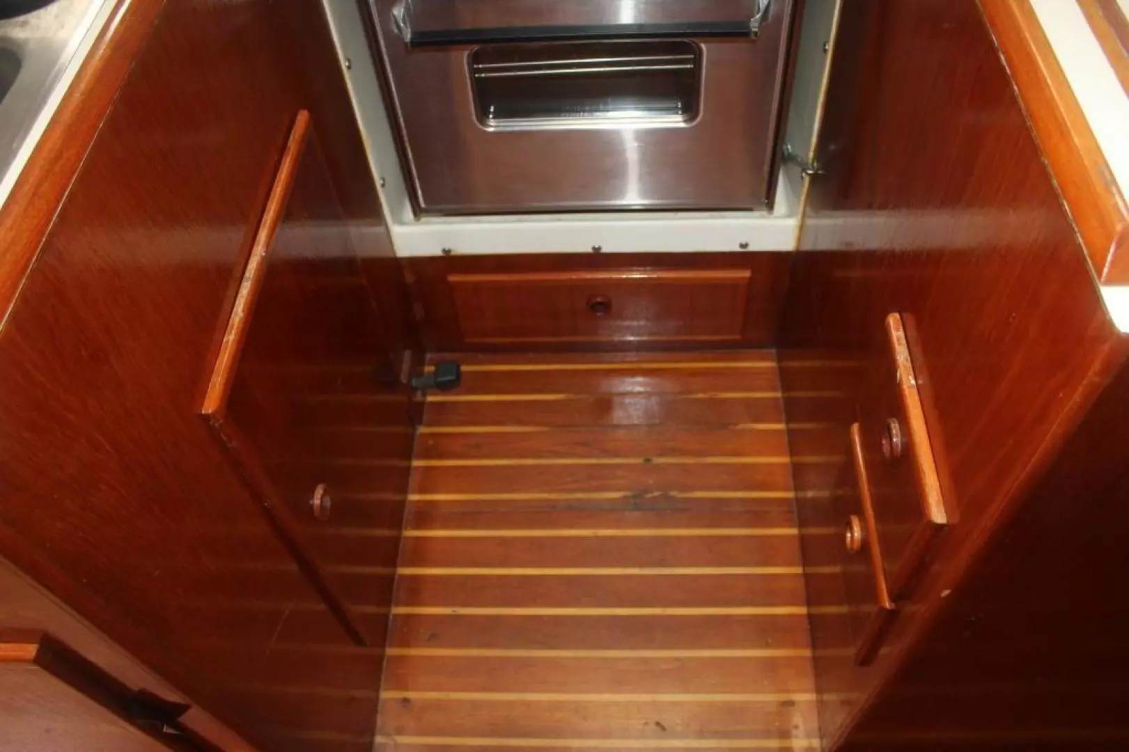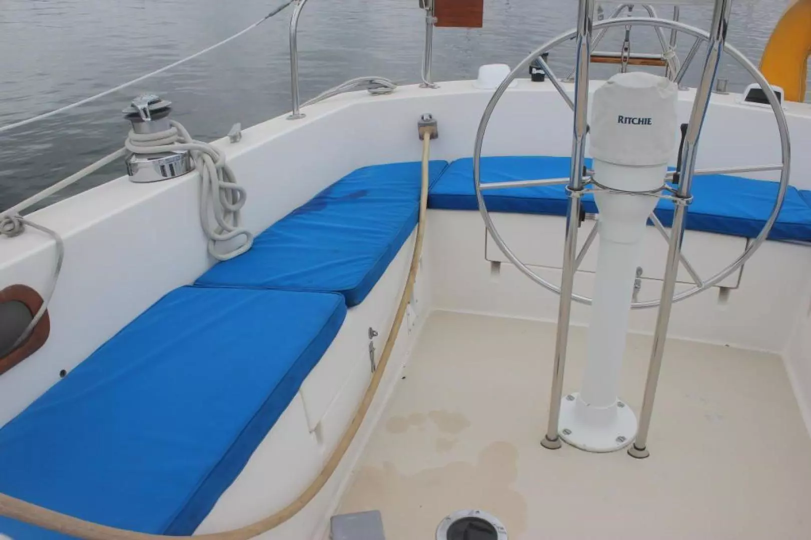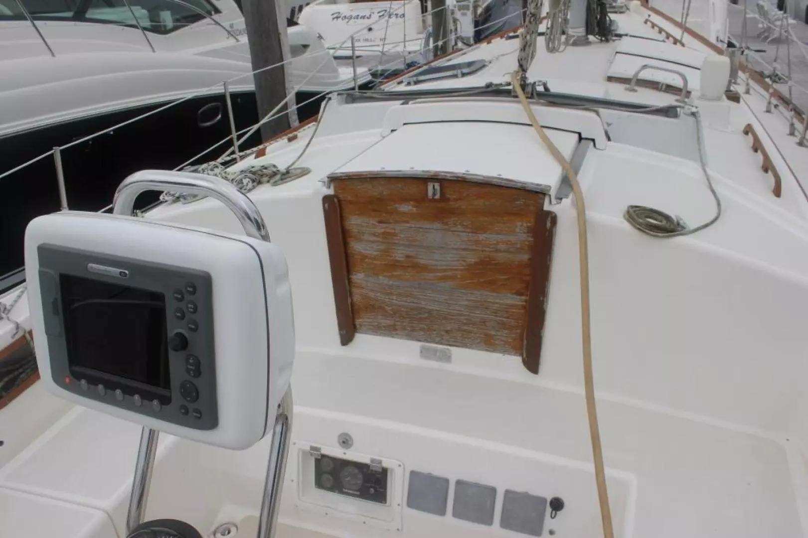 Raeven II is an original owner cutter rigged Pearson 424 with a two berth, two head layout. When entering below deck the Nav Station is to starboard with a double berth to port. Forward to port is the U-shaped galley. There is a second deck access across from the galley to starboard. She has port and starboard settees with a centerline fold down table. Forward is the main cabin consisting of a centerline V-berth with a filler, wash stand to port and a concealed marine head to starboard. The main head with shower is just forward of the Nav Station. She a full compliment of sails and her auxiliary power is a 2010 55-HP Yanmar diesel with less than 100 hours. Check out the Full Specs and call for an appointment to see her. She is located in Greenport NY.