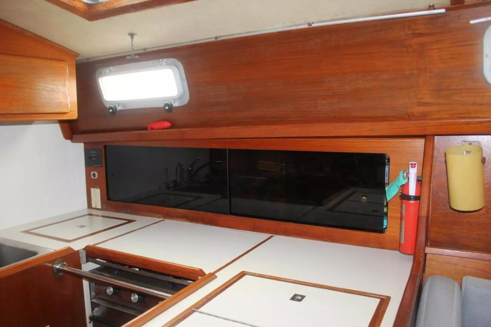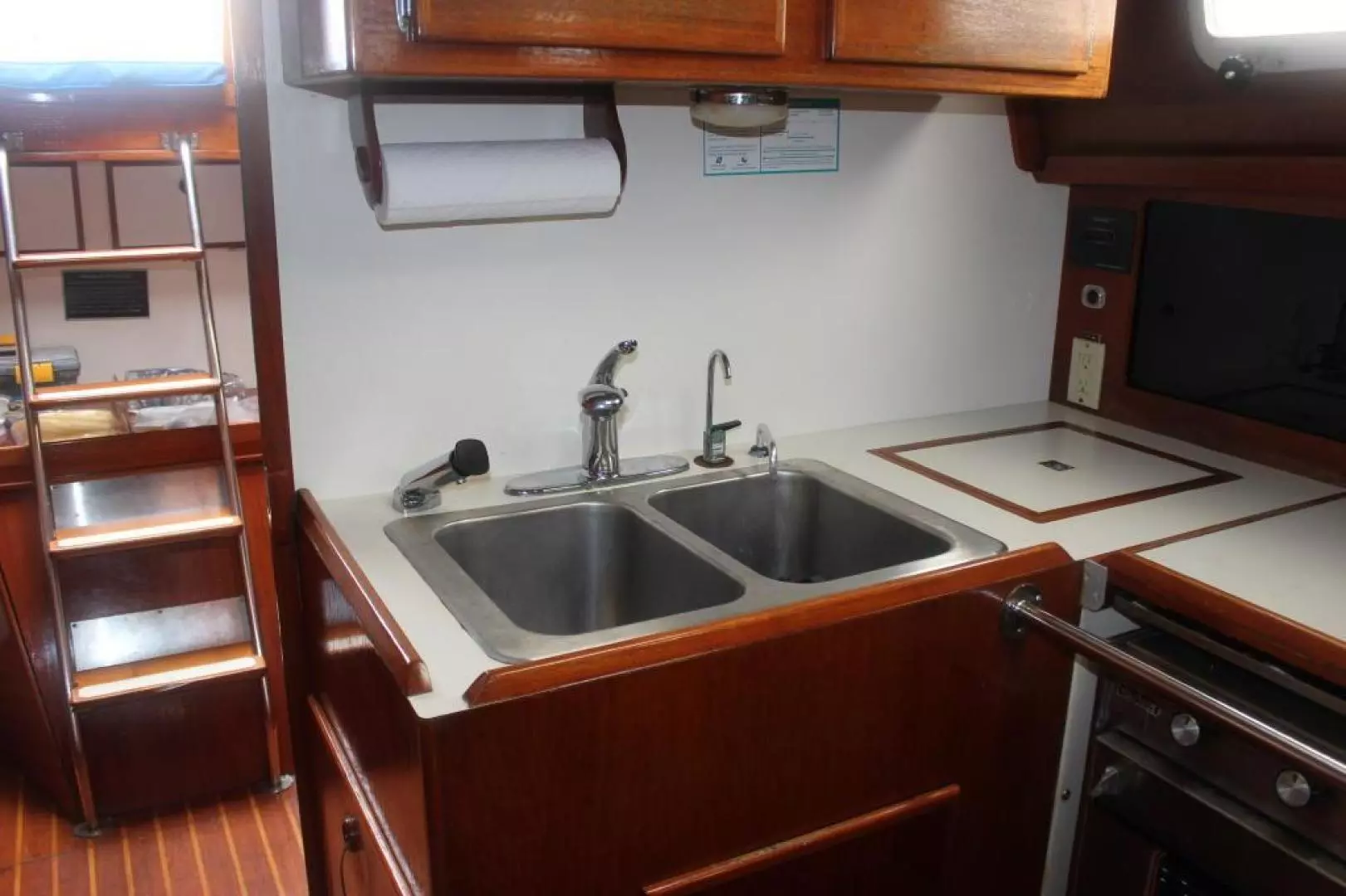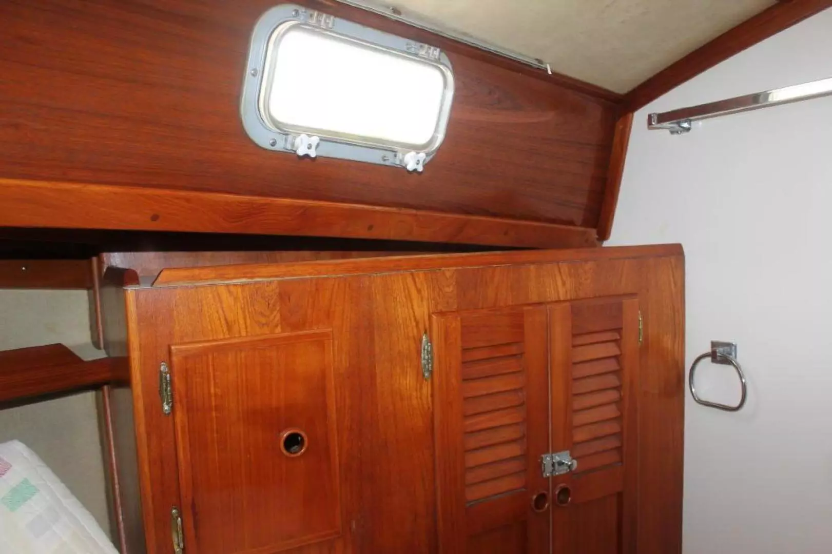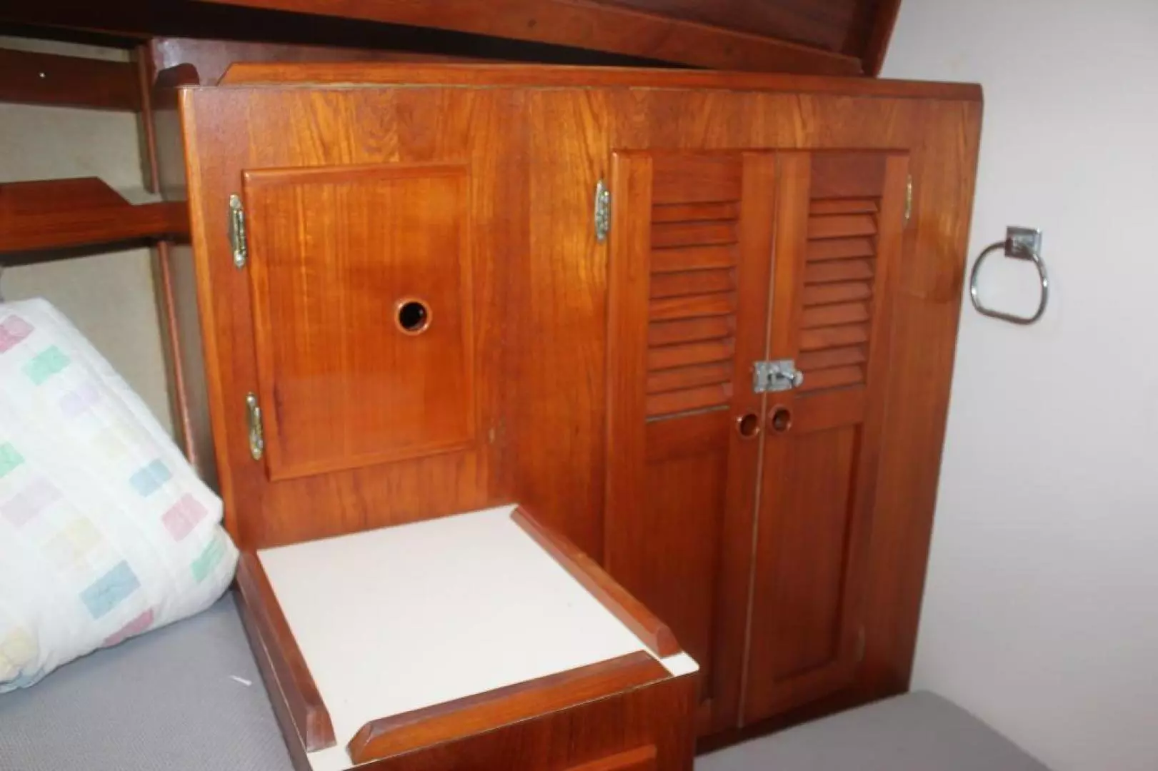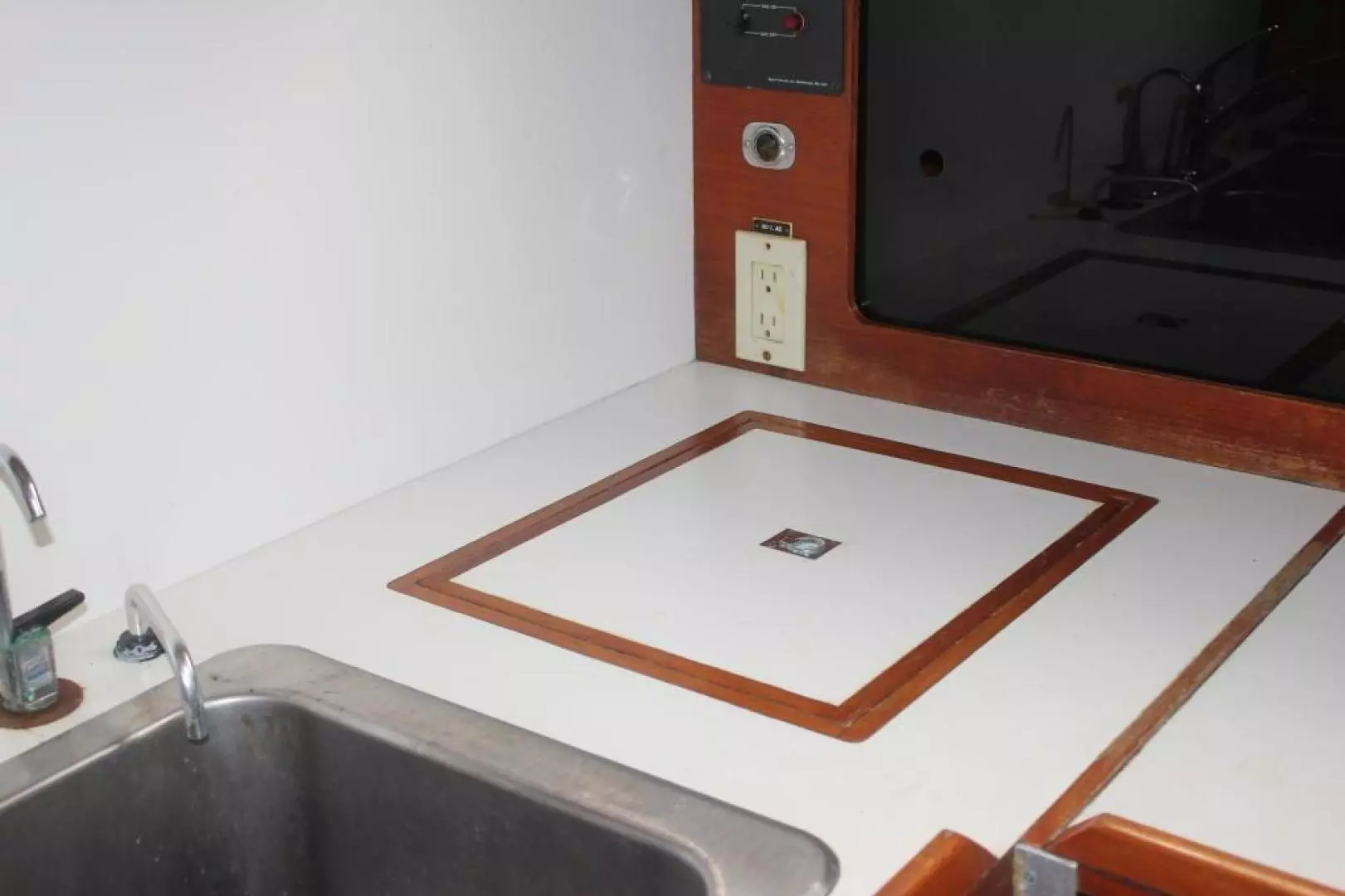 Raeven II is an original owner cutter rigged Pearson 424 with a two berth, two head layout. When entering below deck the Nav Station is to starboard with a double berth to port. Forward to port is the U-shaped galley. There is a second deck access across from the galley to starboard. She has port and starboard settees with a centerline fold down table. Forward is the main cabin consisting of a centerline V-berth with a filler, wash stand to port and a concealed marine head to starboard. The main head with shower is just forward of the Nav Station. She a full compliment of sails and her auxiliary power is a 2010 55-HP Yanmar diesel with less than 100 hours. Check out the Full Specs and call for an appointment to see her. She is located in Greenport NY.