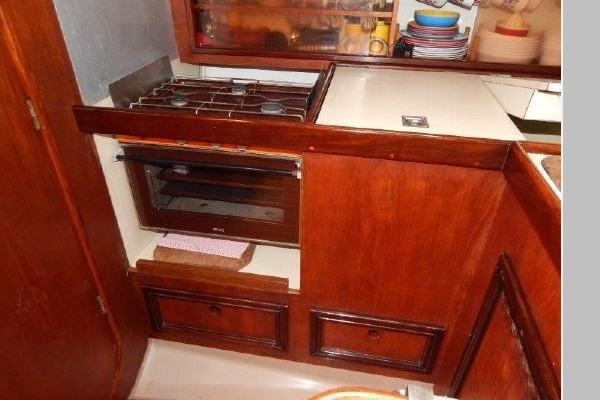 There is teak joiner work, bulkheads and a teak and holly sole throughout the cabin. There are 6 over head hatches and 4 opening ports for ventilation. The fixed ports were replaced in 2019.