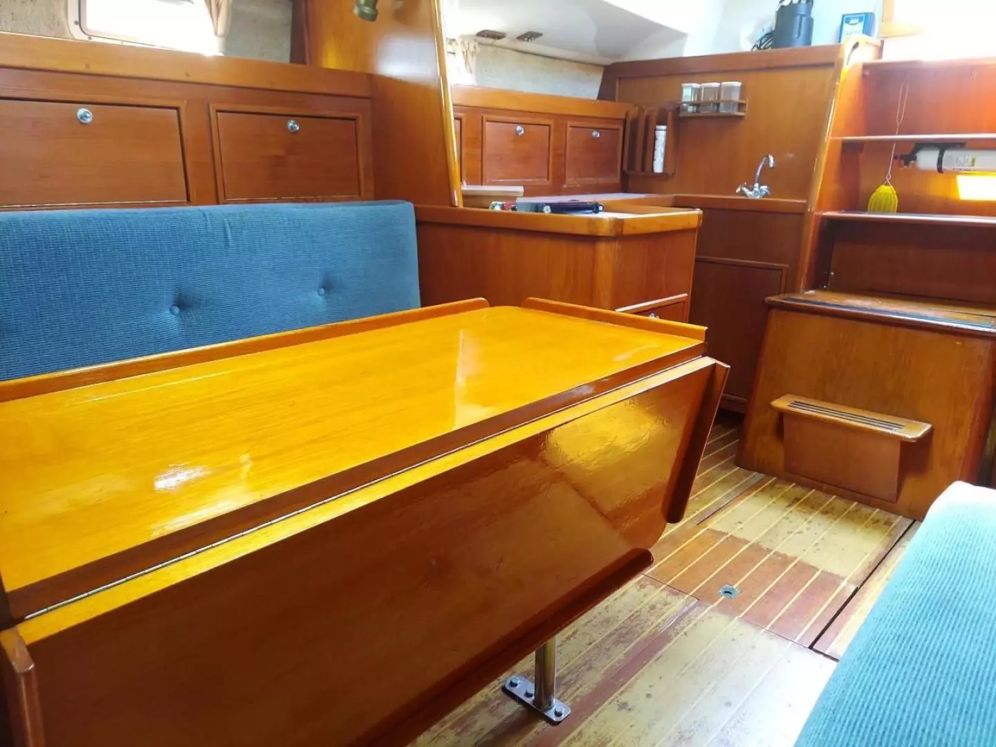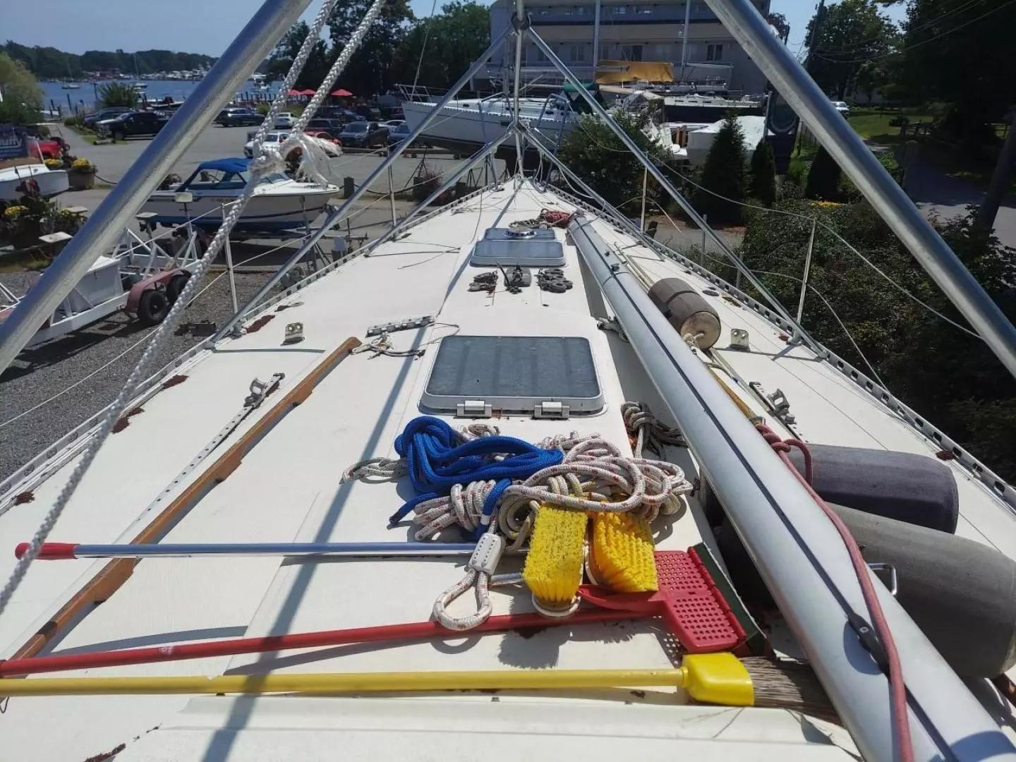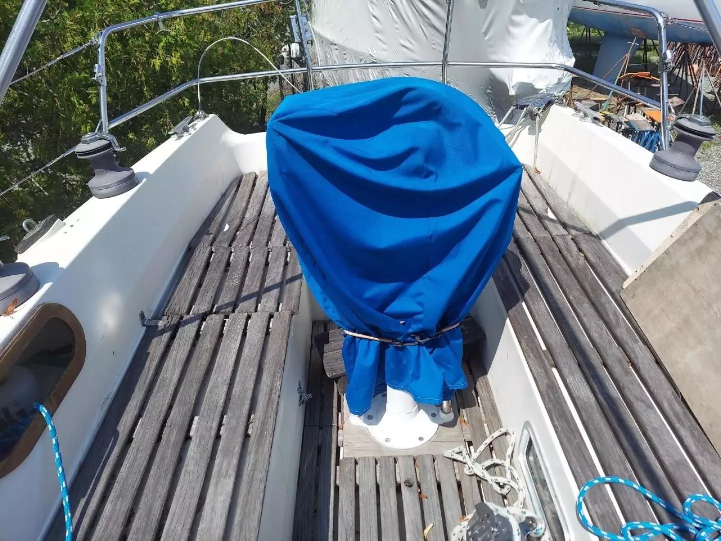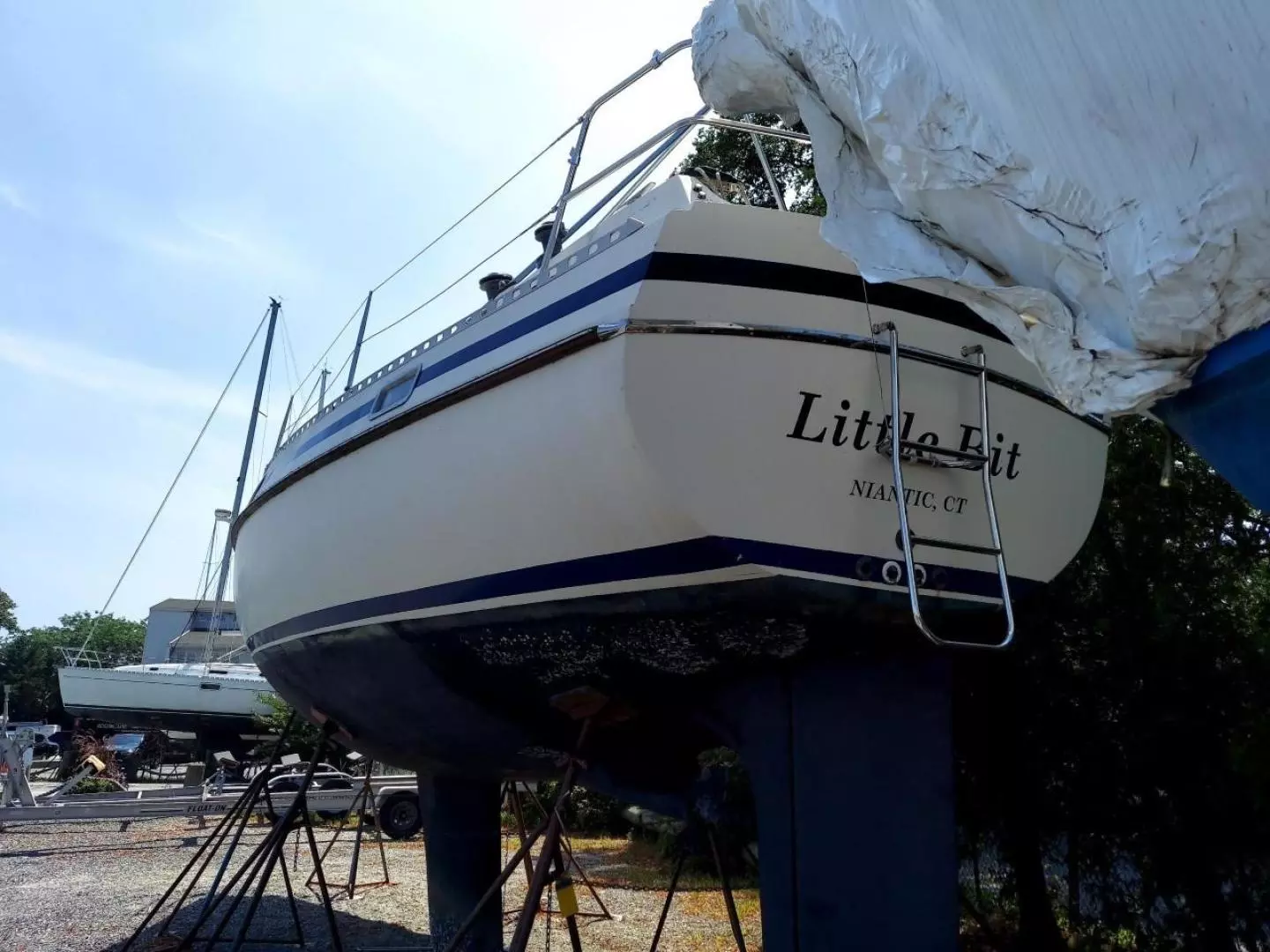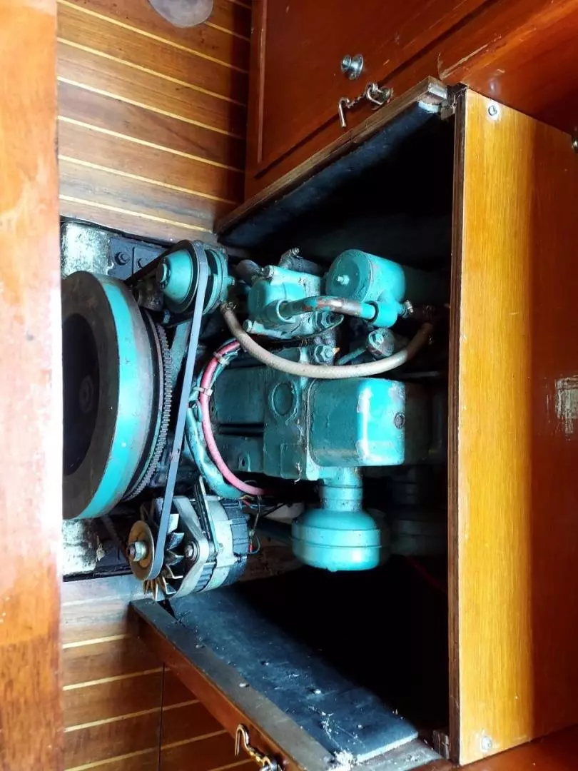 The vessel “Little Bit” is a production auxiliary sailing vessel built by Conyplex, Holland in 1983. A V-berth is forward with a ventilation Hatch followed by the enclosed head with shower. Aft to port is the settee berth and to starboard is the convertible dinette. Aft to starboard is the spacious galley area and opposite to port is the Nav station. Aft to starboard is the aft cabin.