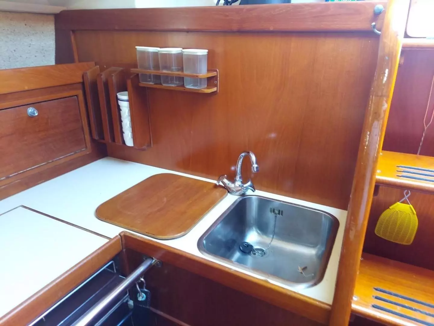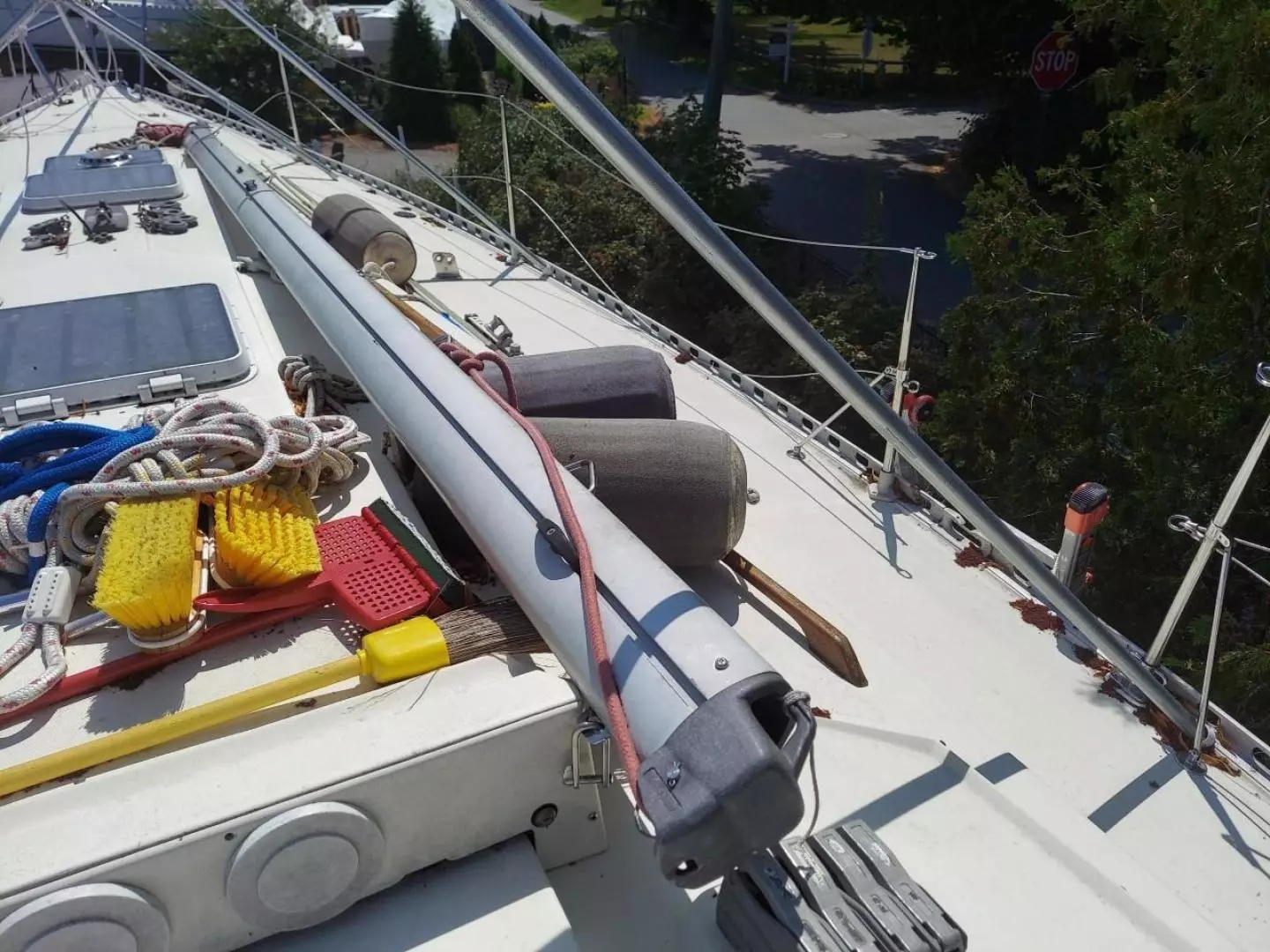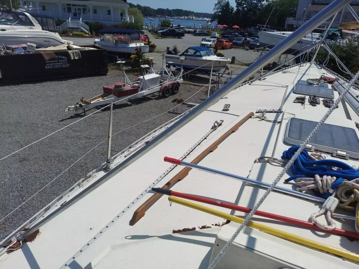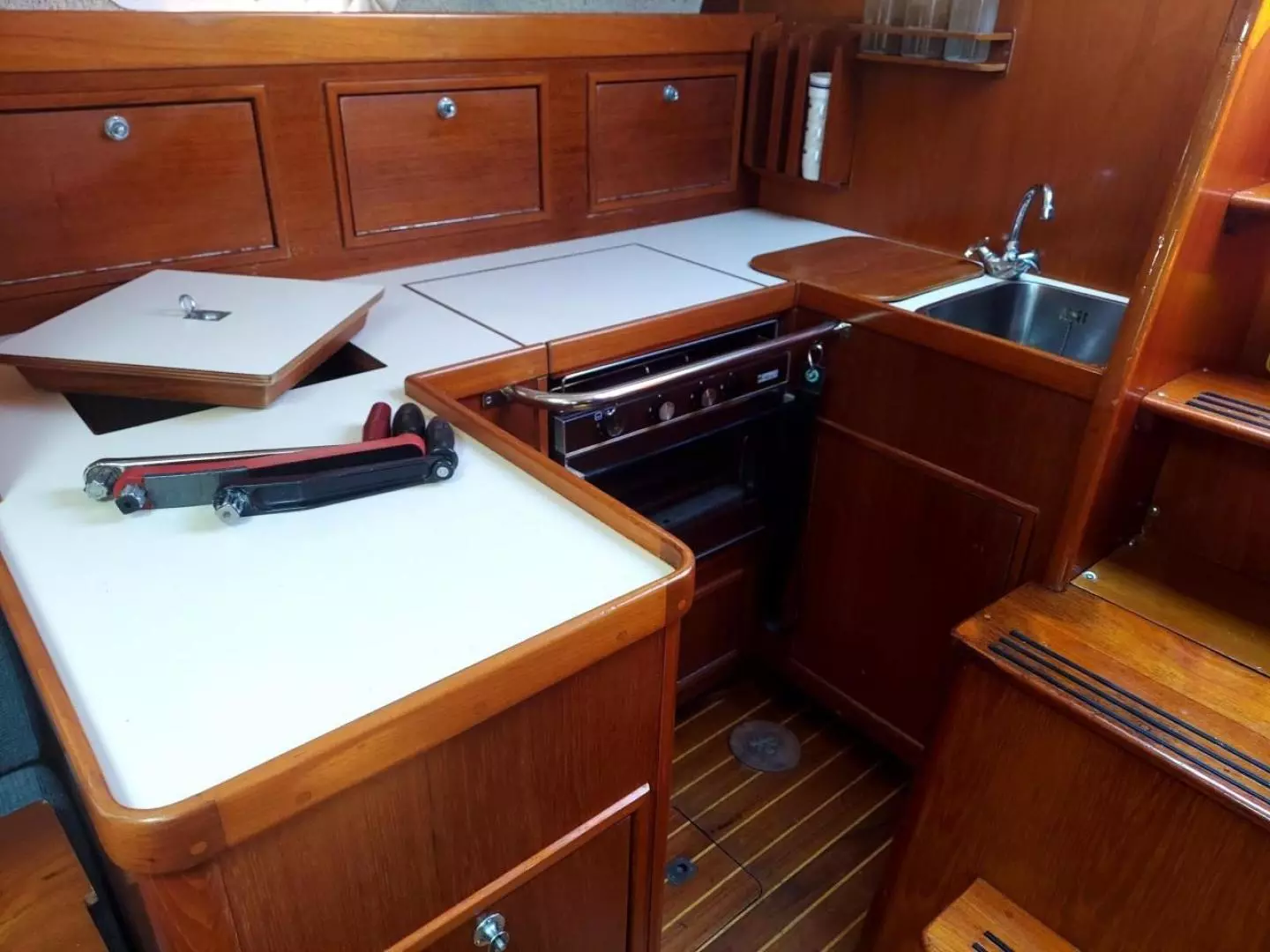 The vessel “Little Bit” is a production auxiliary sailing vessel built by Conyplex, Holland in 1983. A V-berth is forward with a ventilation Hatch followed by the enclosed head with shower. Aft to port is the settee berth and to starboard is the convertible dinette. Aft to starboard is the spacious galley area and opposite to port is the Nav station. Aft to starboard is the aft cabin.