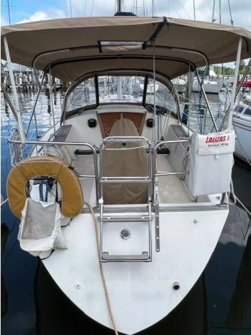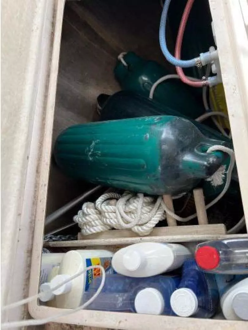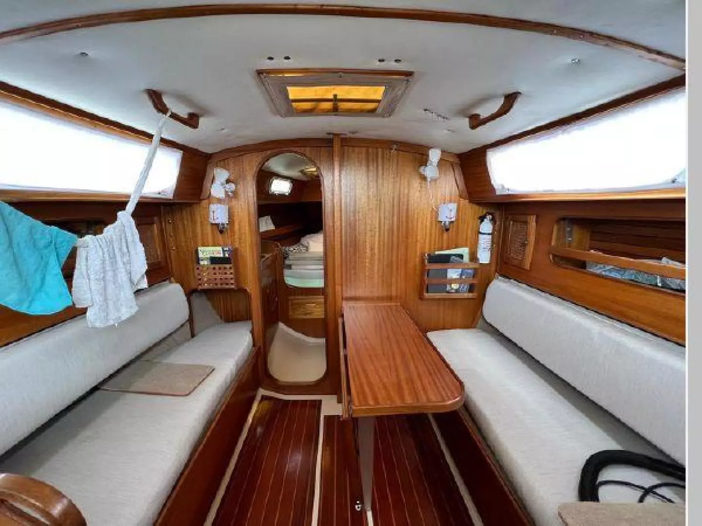 - All the way aft to port is the U-shaped galley. To starboard is a quarter berth. Access to the engine is under the companionway steps that lead to her comfortable cockpit.