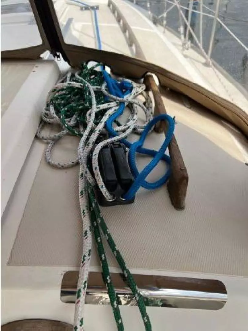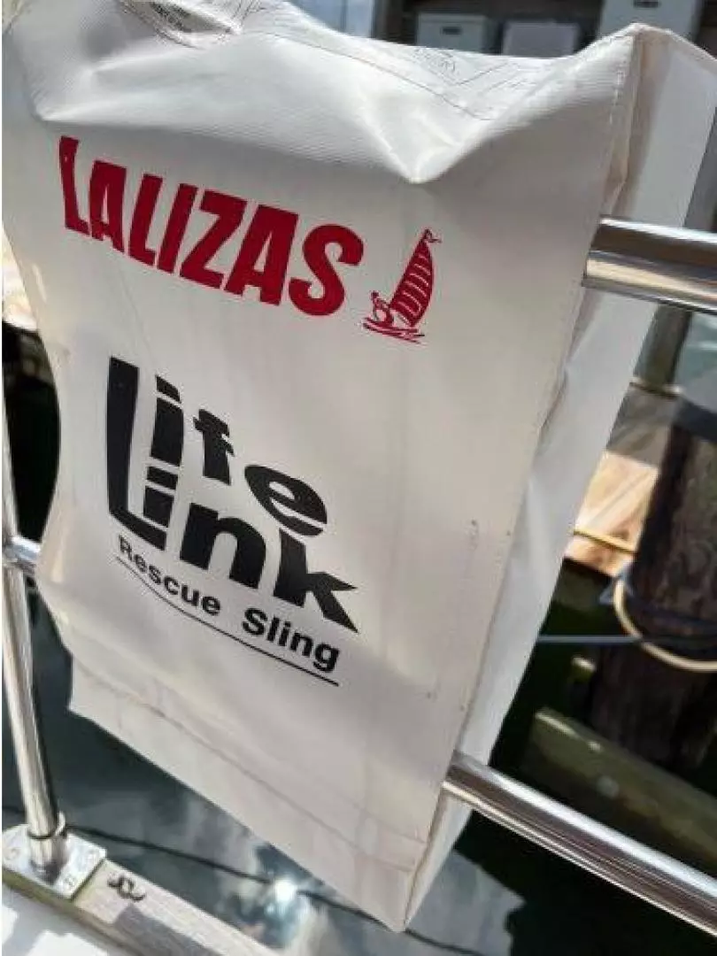 - Stainless steel bow and stern pulpits with side stanchions and double life lines. Gate in the stern with boarding ladder
