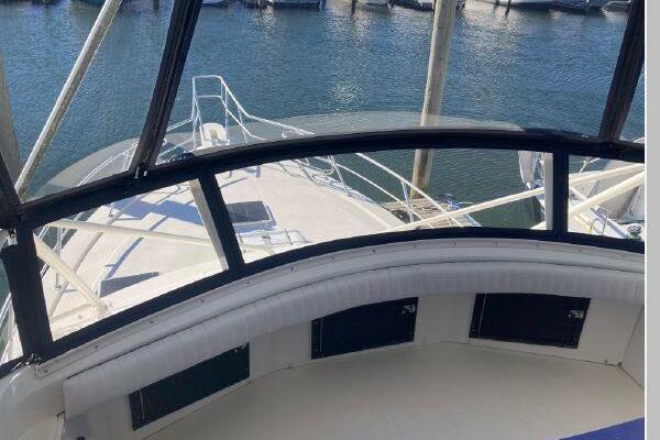 The great looking, solidly built Phoenix 38 is a practical, well thought out design. The large 110 sq ft cockpit has a walk-thru transom door and gate, two 6 foot long in-deck fishboxes, live well, fresh and raw water washdowns and a bait prep station. There is a pair of Lee double spreader outriggers. A cockpit hatch provides direct engine room access. Going forward the side decks are a minimum of 14" wide with double bow rails with welded fender holders. A rugged welded cockpit ladder provides safe access to the flybridge which has seating for 6 people and the helm positioned aft provides the helmsman with unobstructed views of the cockpit. The flybridge has a fiberglass hardtop and a recent full enclosure.