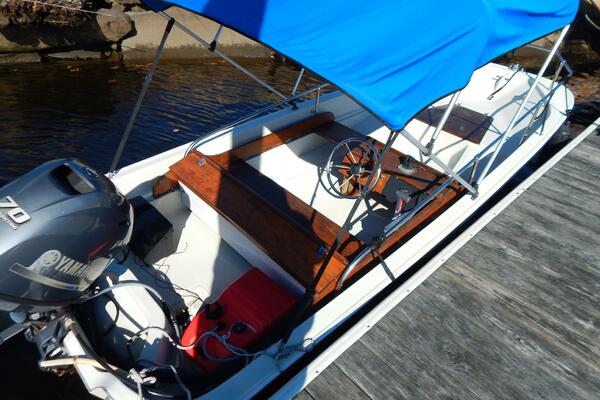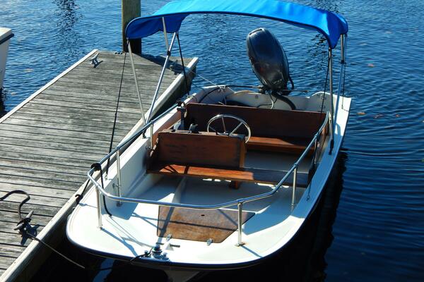 This 1984 Boston Whaler 15 Sport is a well cared for family boat with updated power. She has the mahogany woodwork and a full bow/side rail.