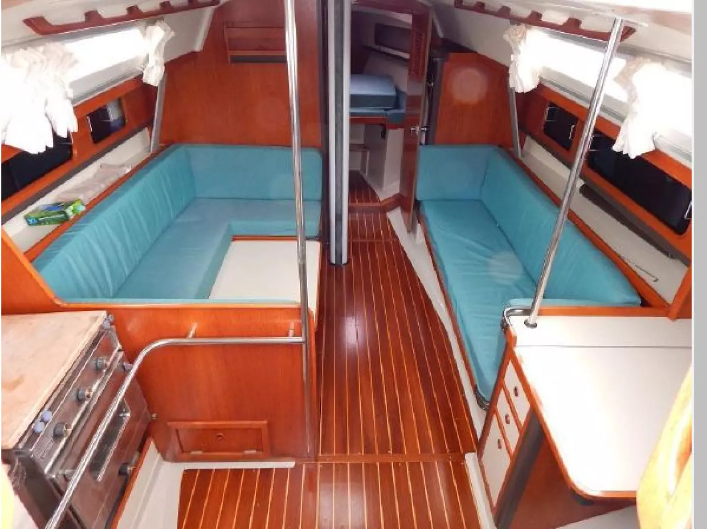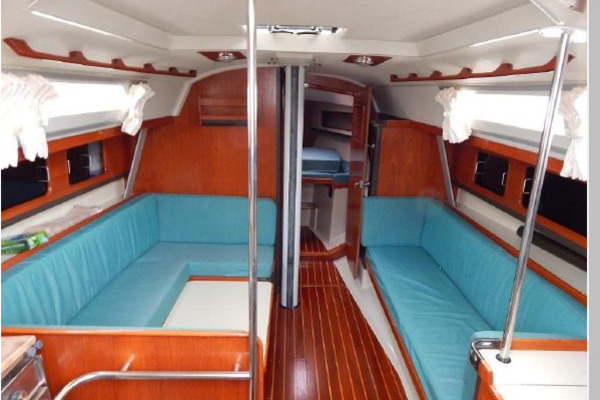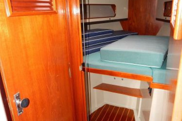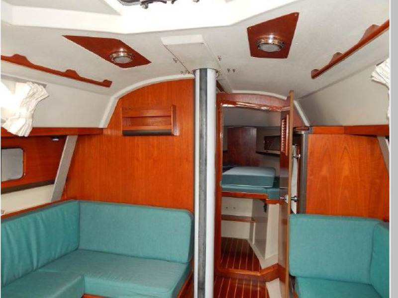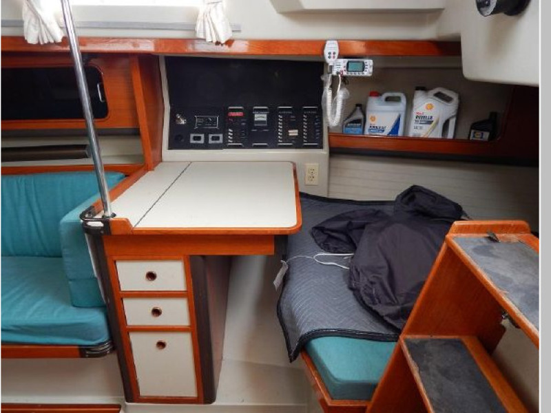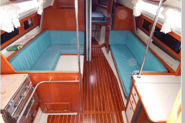 Next aft to port is the galley and the navigation station to starboard, There is a quarter berth aft to starboard.