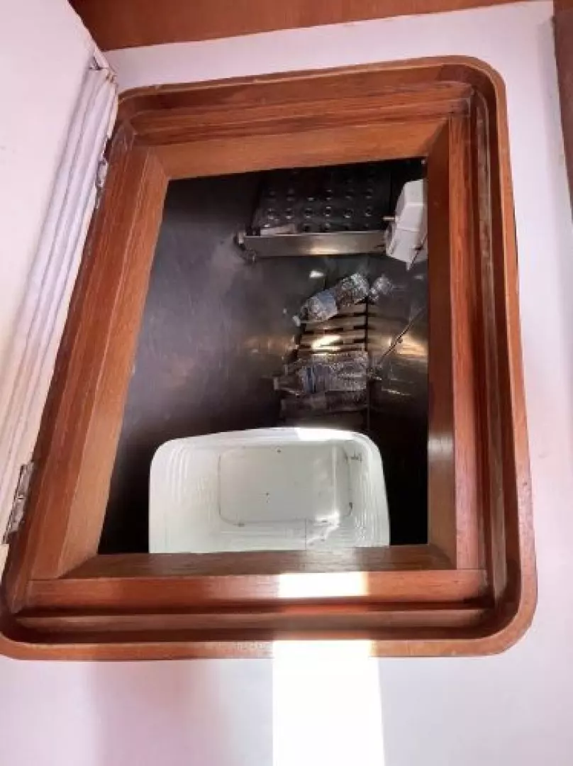 Next is the large head with overhead hatch for added ventilation; The head is equipped with;