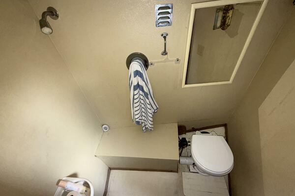 - Queen-size V-Berth with under-bed storage and a built-in closet.-
