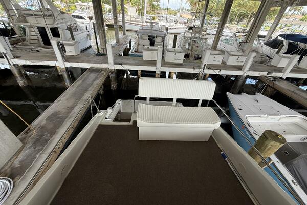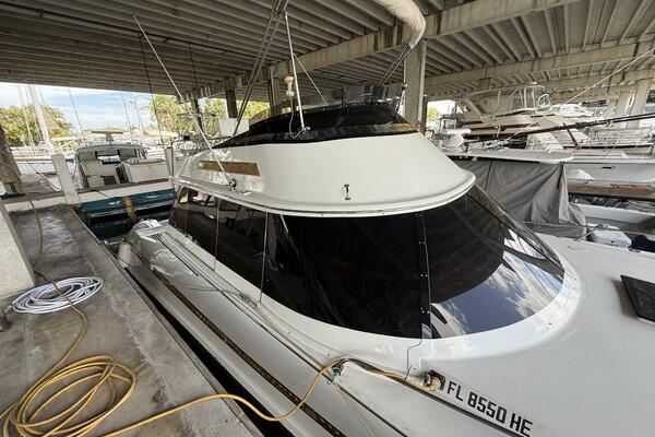 A piece of craftsmanship that is lasting until today where she sits in Dania beach ready for her new owner to see her for what she really is. Everything is thought out perfectly and is functional! Not many boats of today are made that way. This 38 custom was originally powered by twin Mercury 300hp two stroke outboards where it was eventually re-powered with Mercruiser inboard engines and then repowered again with the current engines.
