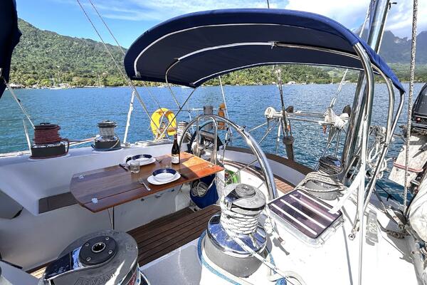 Built in 1984 by the respected Chantier Pouvreau in France, Diatomée is a robust 18-metre aluminium sailing yacht designed for serious bluewater cruising. With a 5.5 m beam and 2.7 m draft, she displaces 26,000 kg and cruises comfortably at 9 knots, powered by a reliable 124 hp Volvo TMD40A engine. Her 1,000 L fuel capacity and 1,400 L freshwater storage provide excellent autonomy for extended voyages.