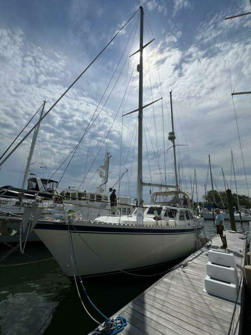 She is a ketch rigged vessel with "Reef Away" roller furling main and mizzen masts. Aluminum spars with the main stepped on the keel and a Stainless steel support post for the mizzen mast. Stainless steel wire standing rigging. All lines/halyards are led aft to the cockpit for ease in handling.