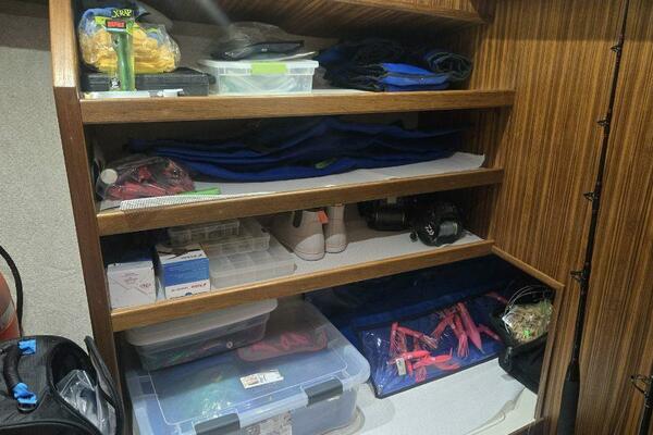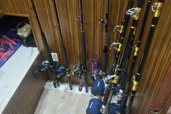 Two stateroom, 2 head layout. 3rd stateroom converted into tackle room. Roomy Salon with Step down galley with extensive storage underneath.