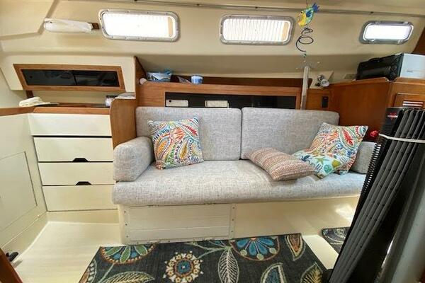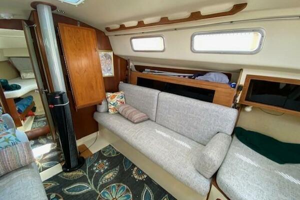 Pearson had two main parameters guiding the design of the 303. First, they wanted to make her the biggest 30-footer afloat, in terms of cruising accommodations and interior space. Second, they wanted to make a boat that could be handled by a couple or small family. For small boat cruising, the Pearson 303 accomplishes that and more. With an integral keel and 6‘3 headroom down below, this is a very comfortable boat to sail.