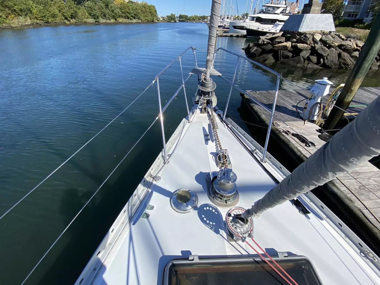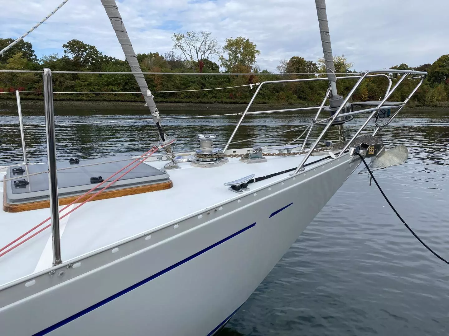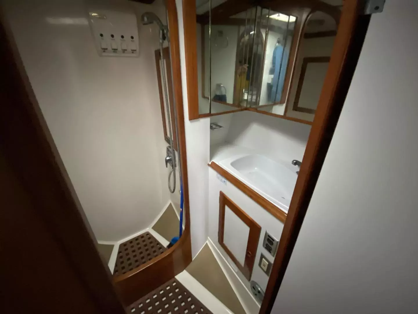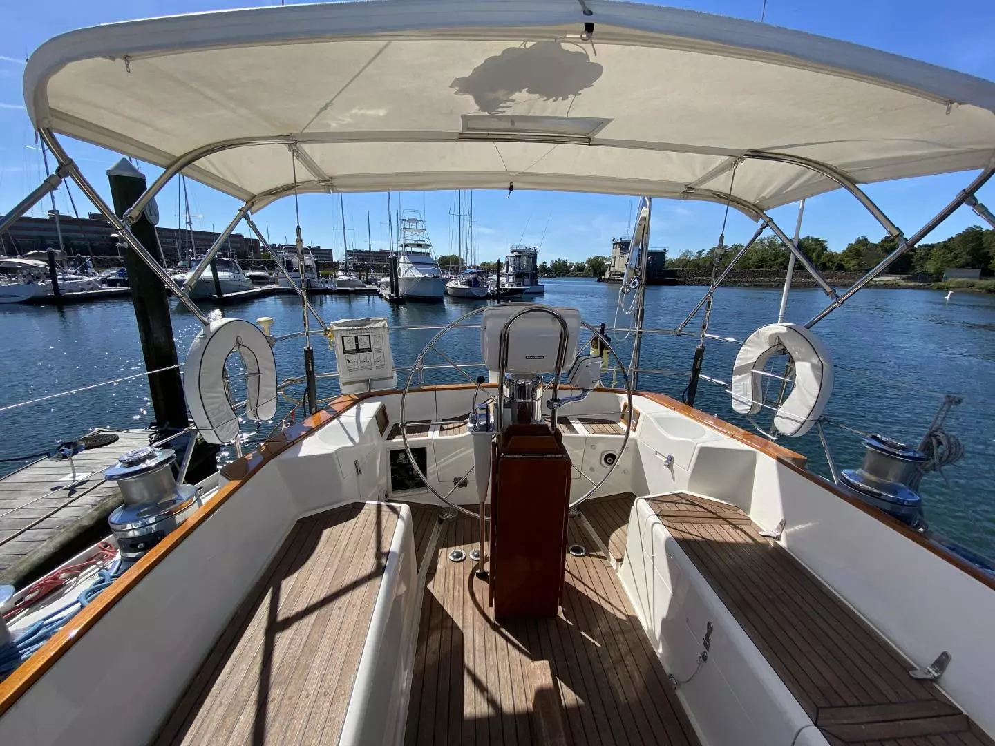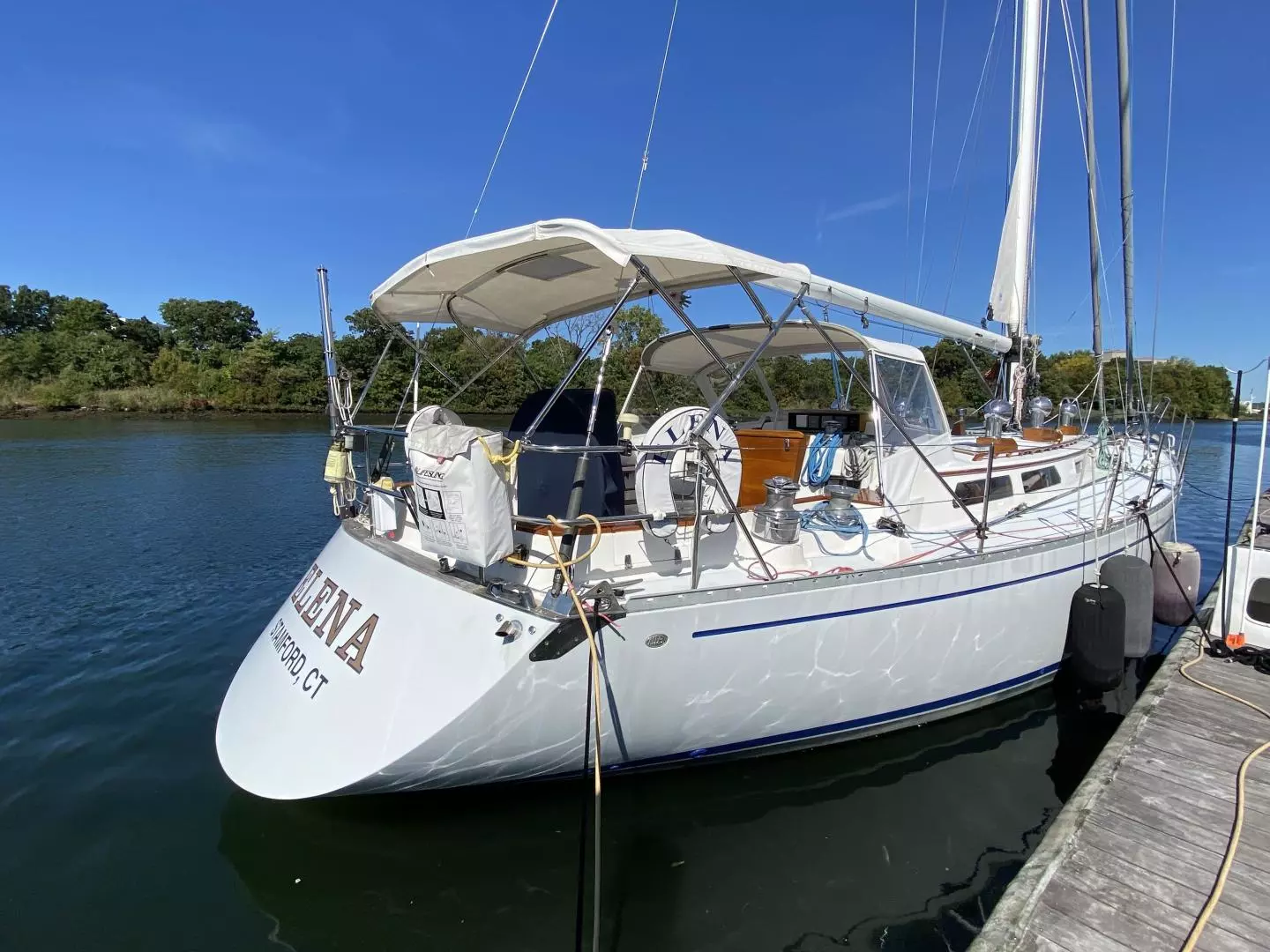 ELENA is easily sailed shorthanded, with furling headsails, electric furling mainsail, electric primary winches, and electronics including AIS and radar. An electric windlass and bow thruster round out the amenities for easy operation. Hydraulic centerboard allows for close-in coastal cruising or deep water performance sailing.