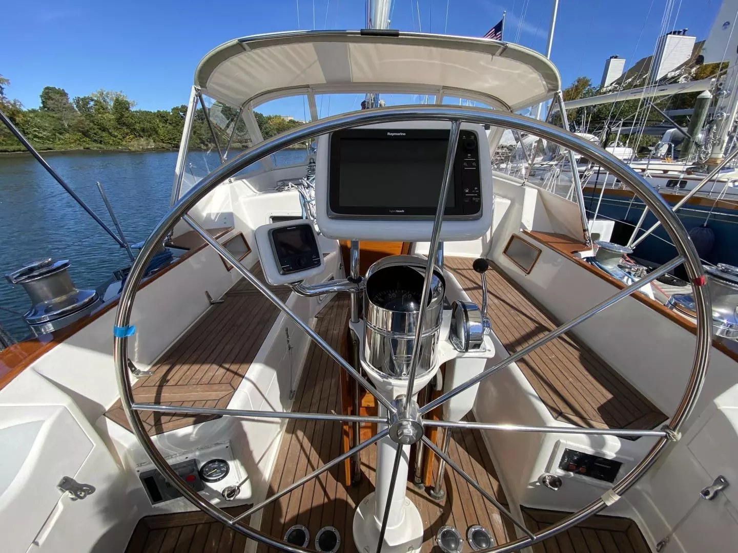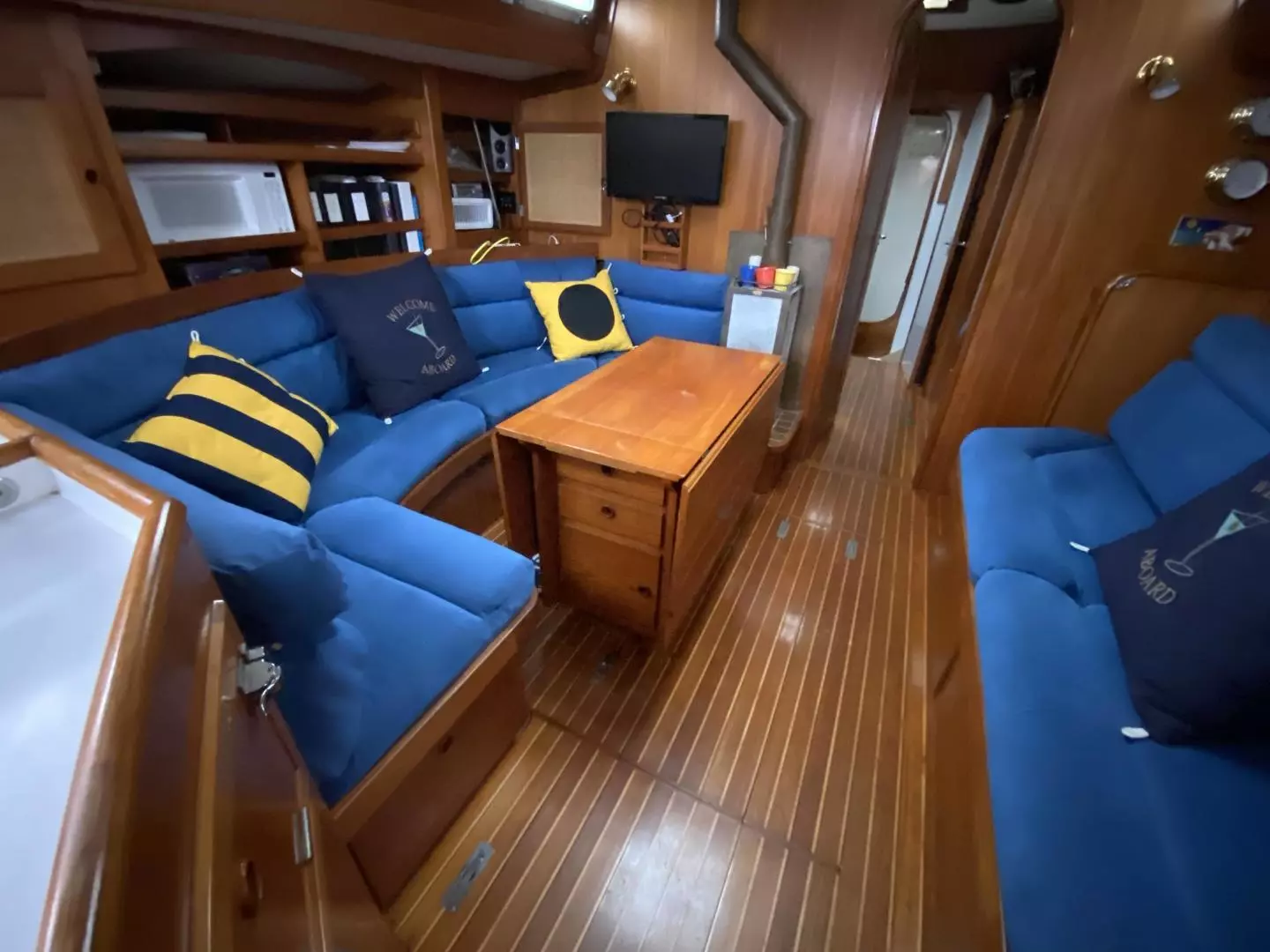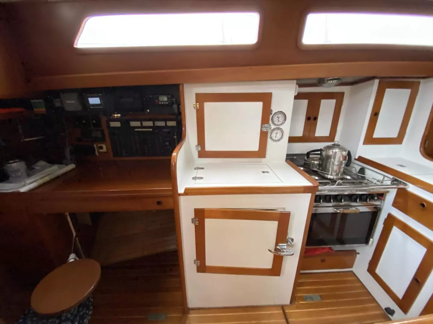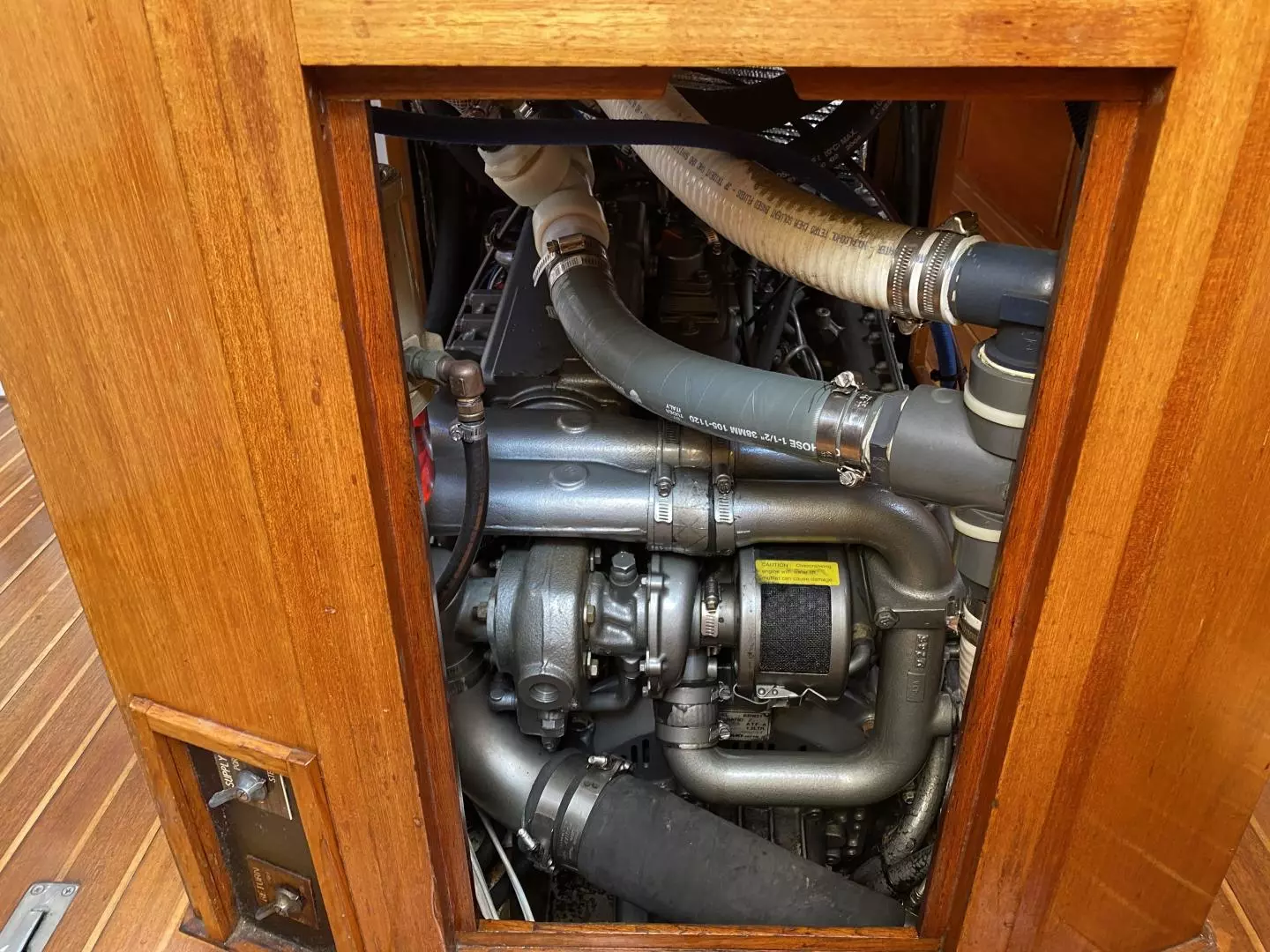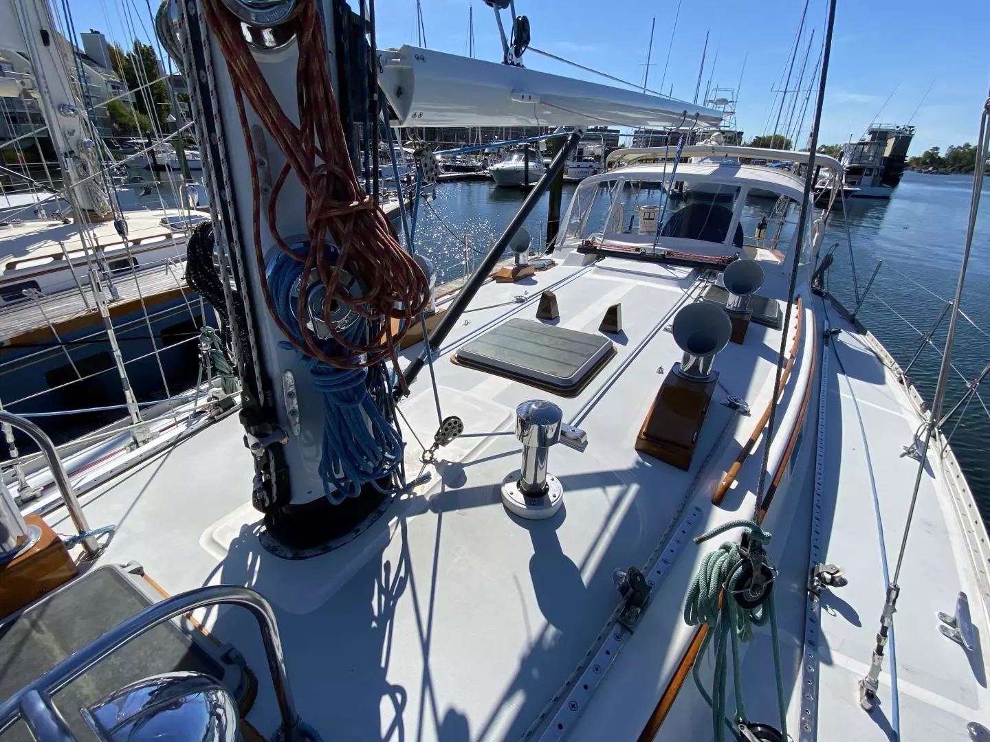 Beautiful teak interior with three private staterooms, two heads with showers, large main salon, U-shaped galley, sit-down navigation station, Luke soapstone fireplace, heat/AC, and much more.