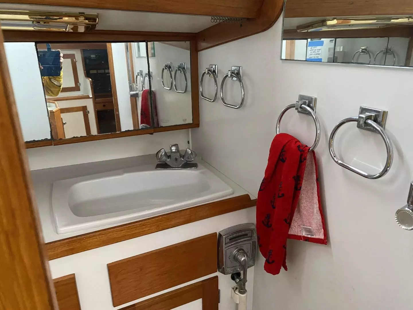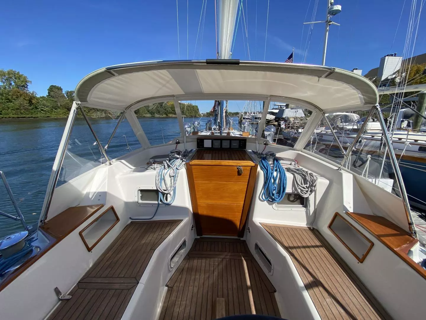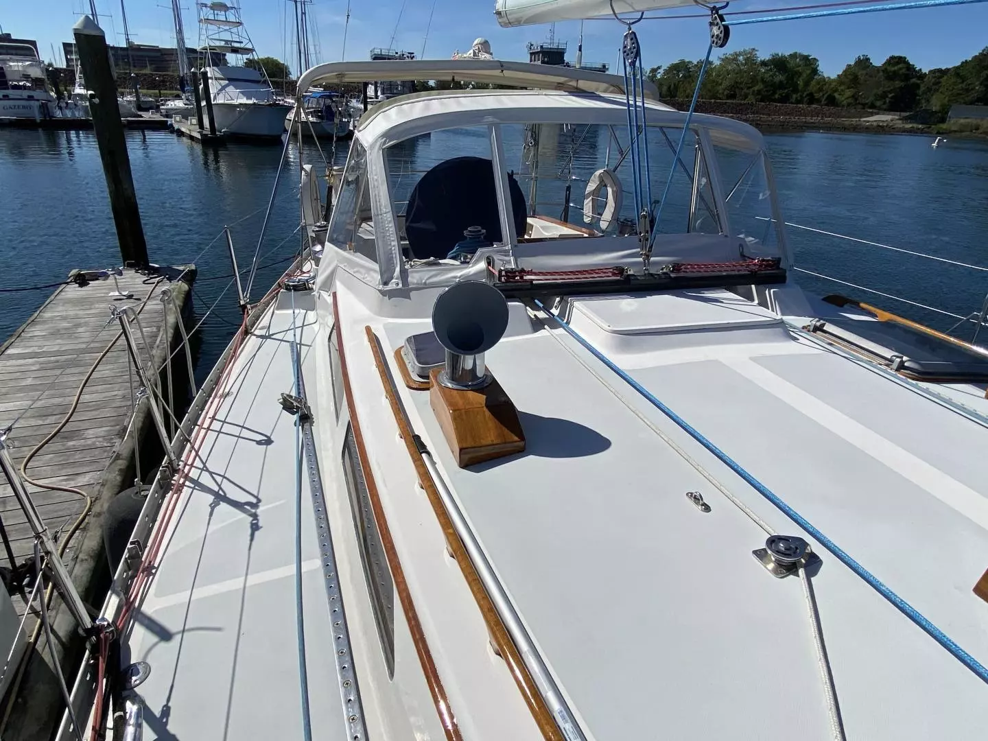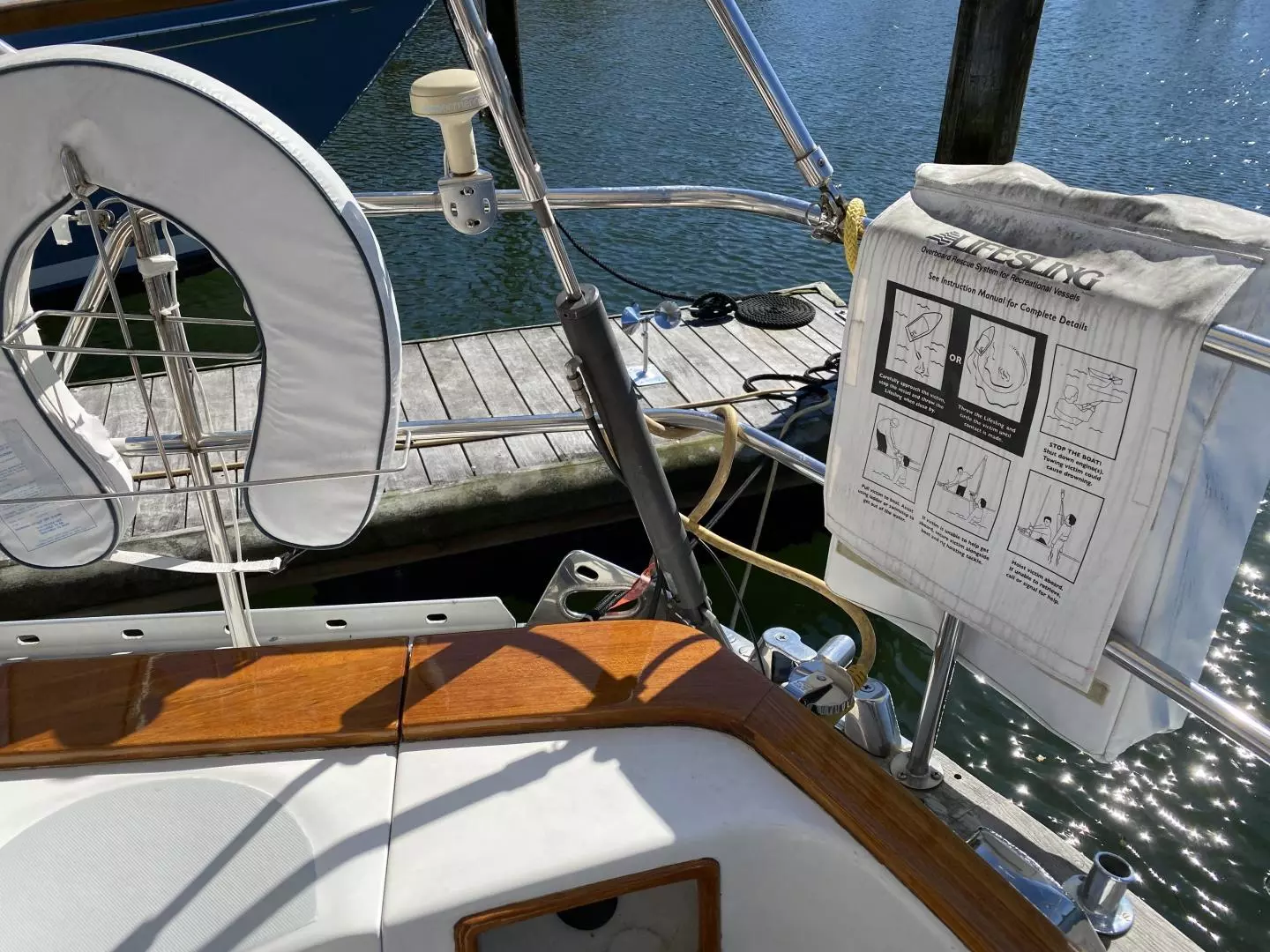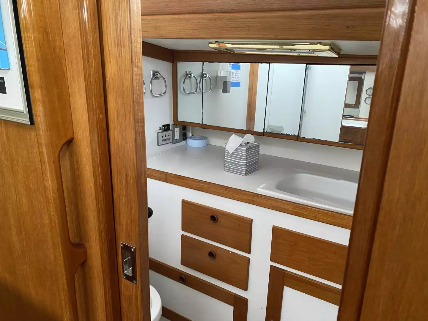 Beautiful teak interior with three private staterooms, two heads with showers, large main salon, U-shaped galley, sit-down navigation station, Luke soapstone fireplace, heat/AC, and much more.