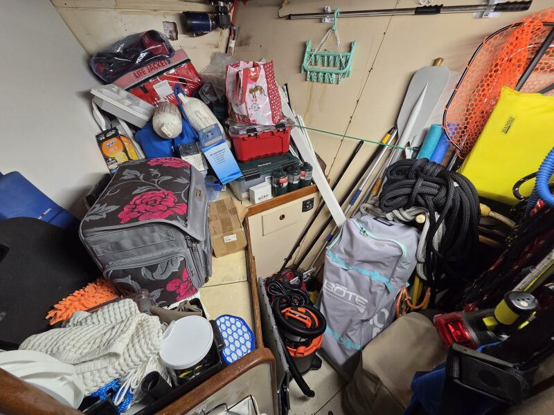 - Crew/Storage Cabin: A door through the shower leads to this cabin, which contains a bunk and is currently used for storage with many cruising extras and spare parts (all included in the sale).