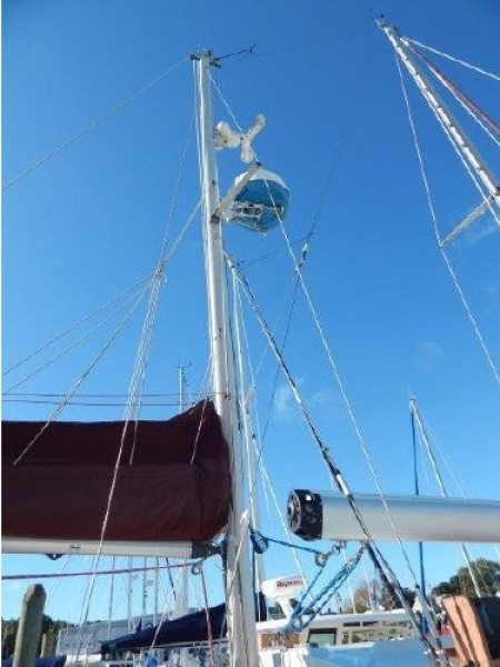 - Mizzen mounted air-horn system, radar reflectors and antenna array.