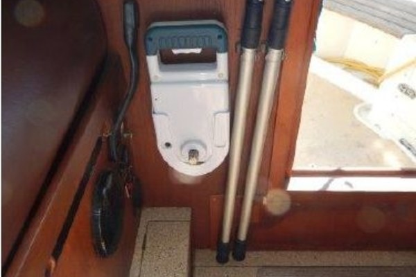- Electric flush head, holding tank/deck pumpout/overboard discharge system