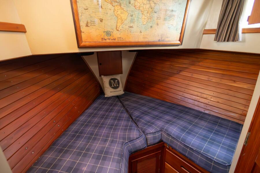 - Master Stateroom: Aft with double berths Port & Starboard, ample storage, and private head with shower.