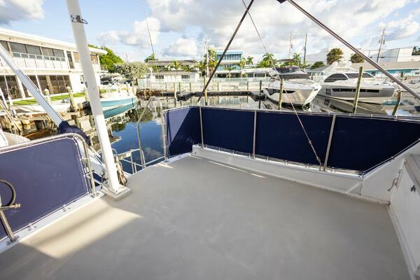 - Dual helm stations (flybridge and lower helm) for versatile operation.