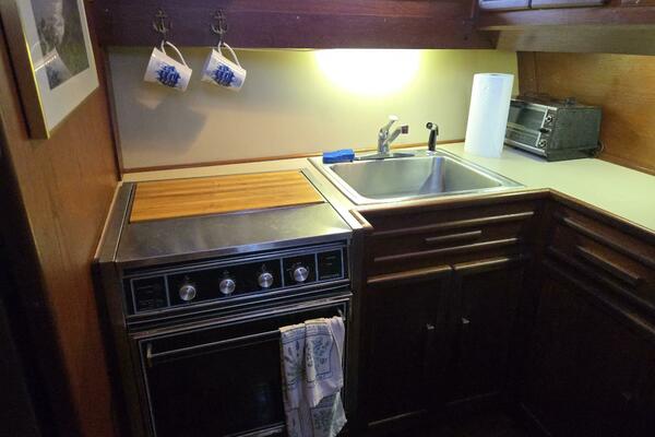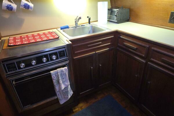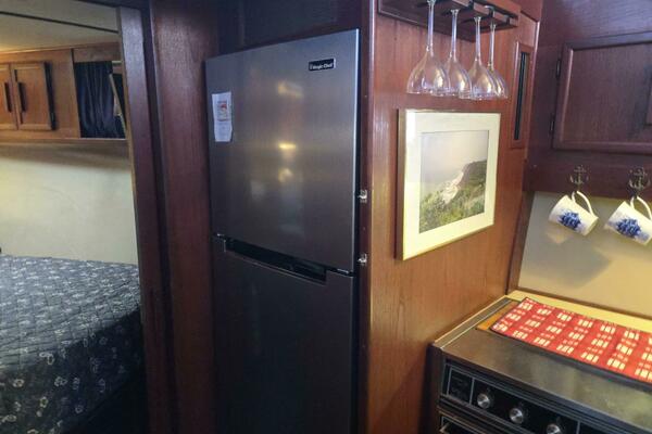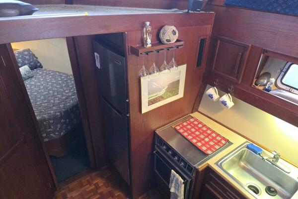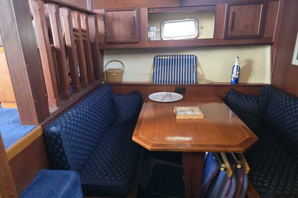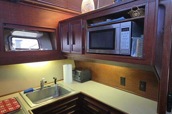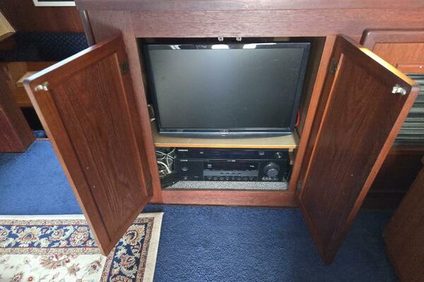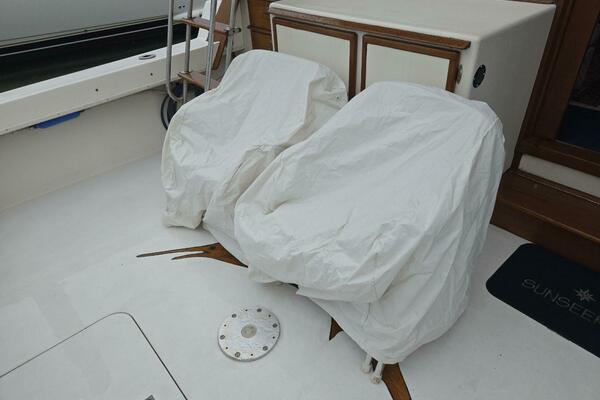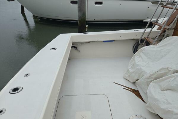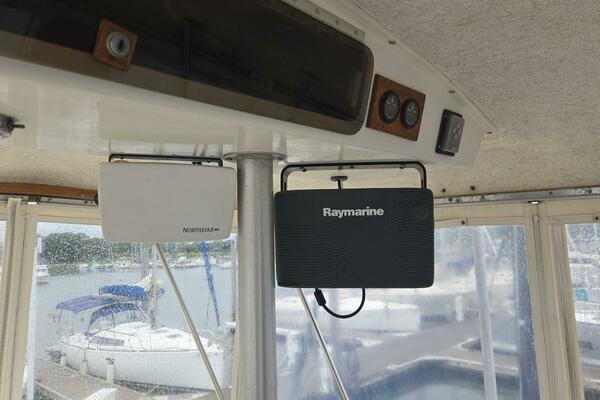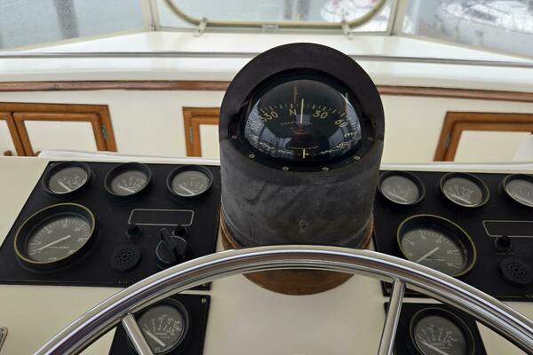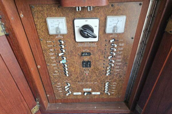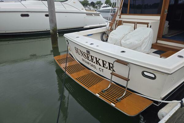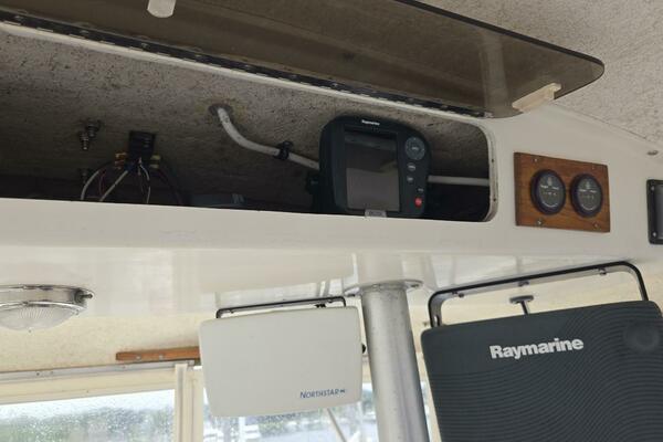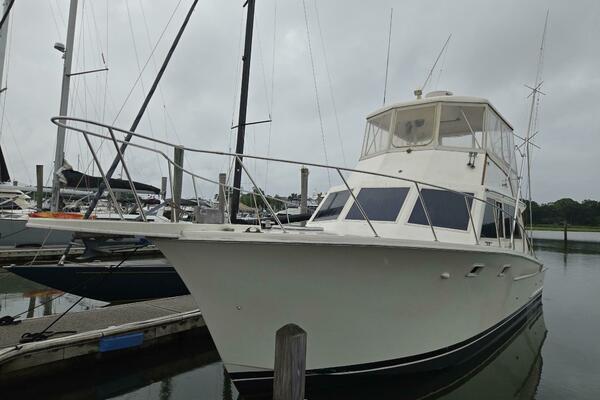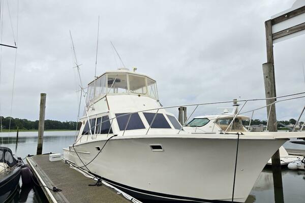 Forward you have the master stateroom with a offset queen bed, hanging locker and ventilation hatch. Ample storage throughout. Aft to port is the enclosed head with separate stall shower.. Aft to port again is the dinette area that converts to another queen bed. Aft to starboard is the spacious galley area with all the amenities including a garbage disposal. Up a couple of steps to the salon area with a sofa to port, 2- Barrell Chairs. Out the salon door the a large cockpit area suitable for deep sea fishing or entertaining. Up on the flybridge you have a center helm with a forward facing bench seat and a bench seat on the port side. Very roomy flybridge with ample storage in cabinets and under seats.