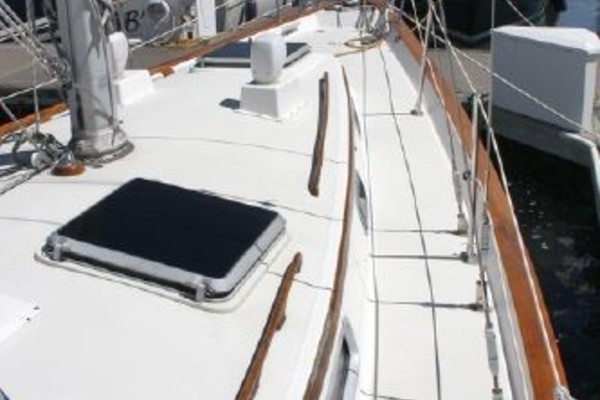 Built with a solid molded hull, balsa core deck with encapsulated lead fin keel, and a fiberglass rudder mounted on protective skeg. Keel stepped Isomat Mast and Boom with single spreader. Yanmar turbocharged 4 cyl diesel 50hp with 55 amp alternator. Autohelm 4000 Auto Pilot w/ wind sensor, Wheel, emergency tiller.