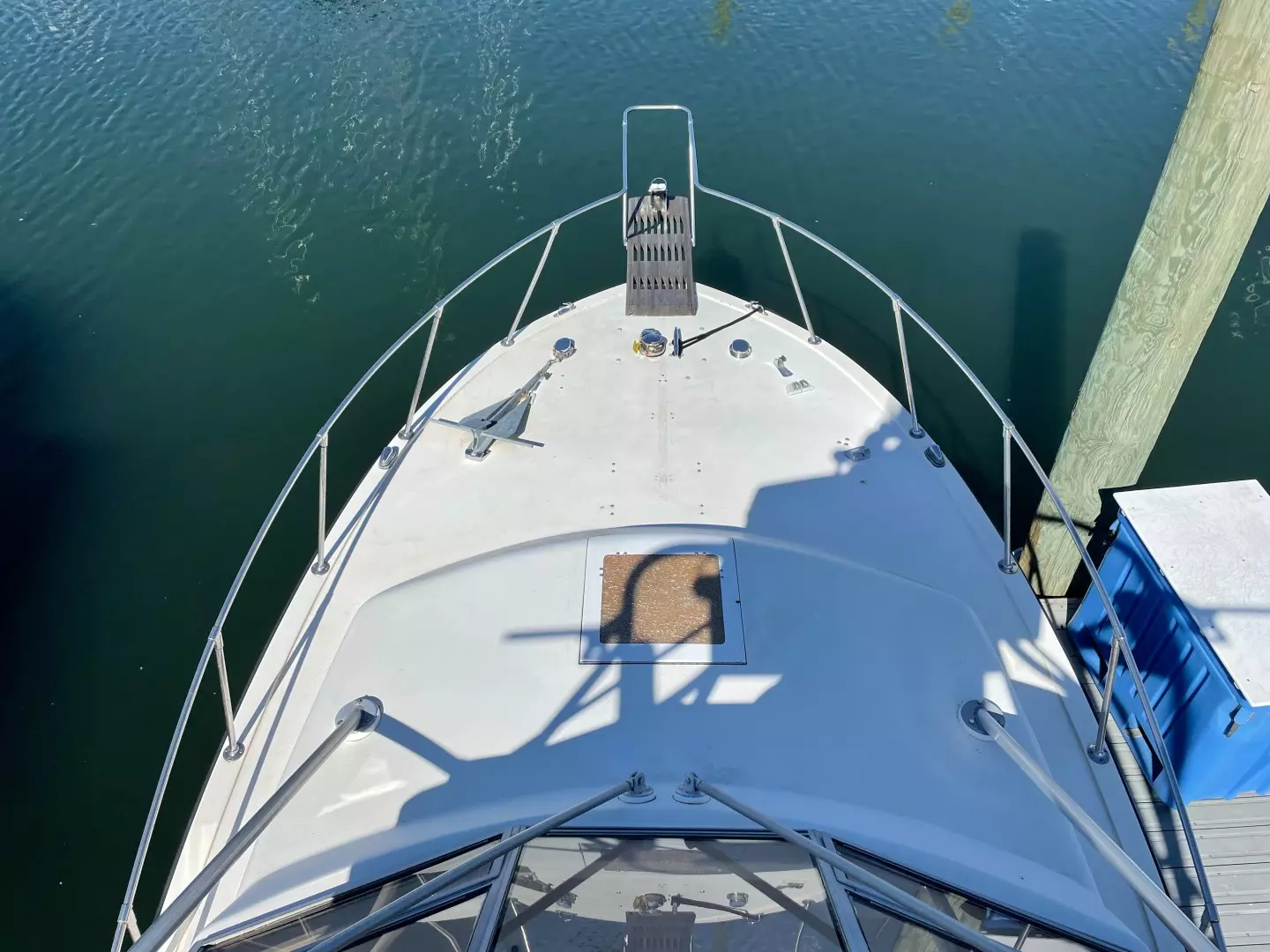 There appears to be an elevated moisture spot on the foredeck.