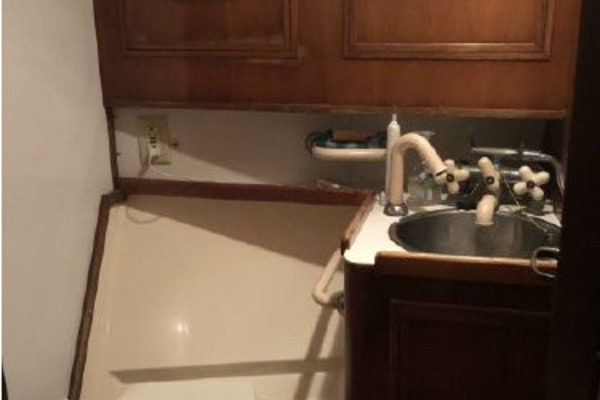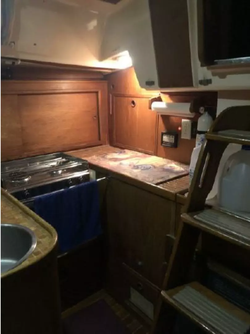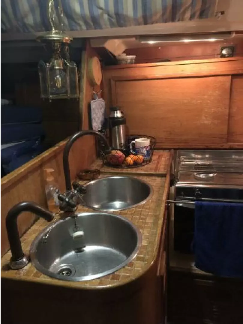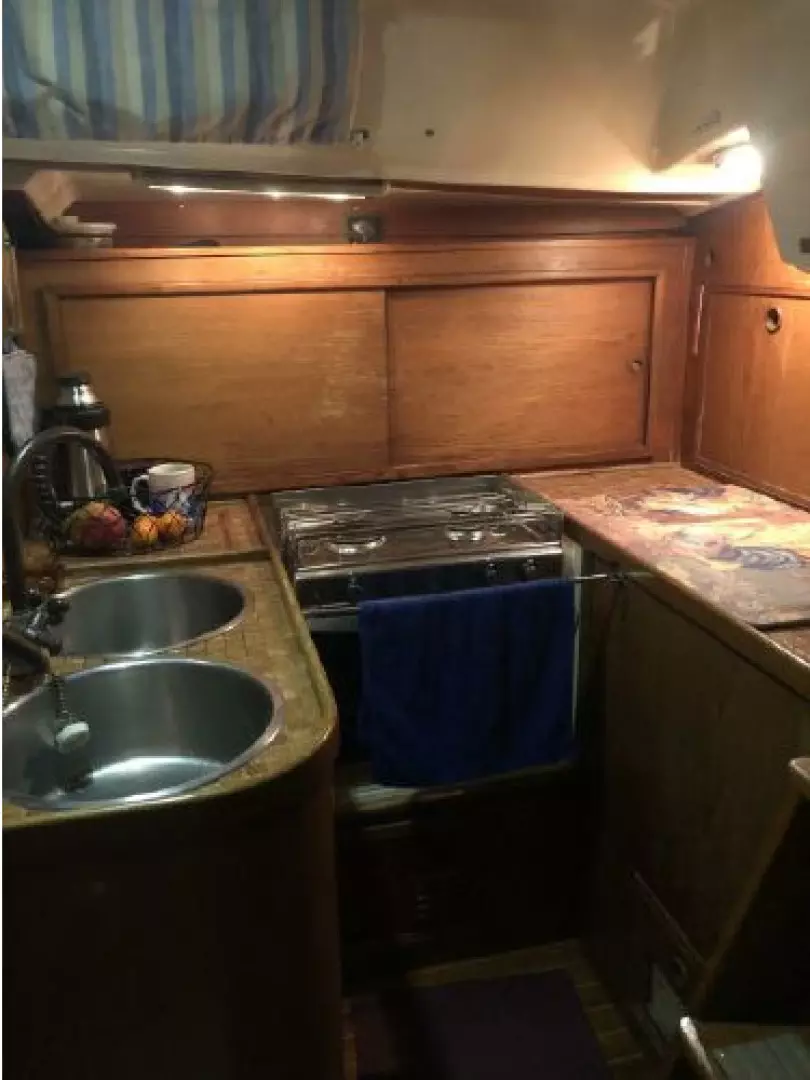 - Nice U-shaped Sea galley with offshore safety belt eyes