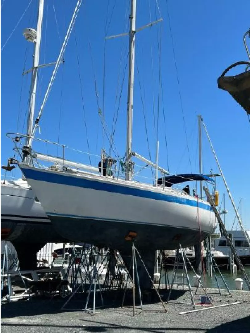 - Stainless steel bow pulpit and Push-pi with side stanchions and double lifelines (replaced in 2020), gates on each side