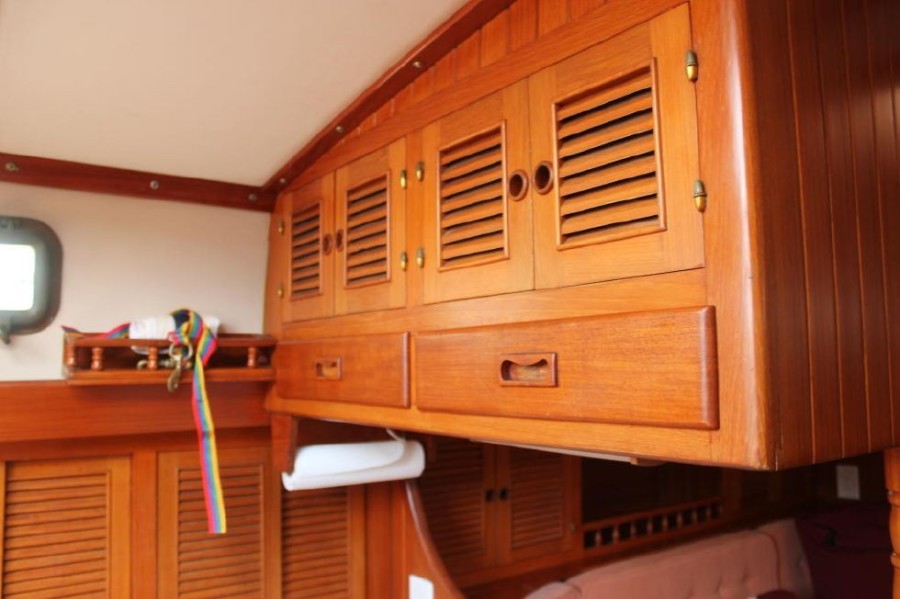 This Robert Perry design was built for serious offshore cruising. Saoirse has always been kept on the Chesapeake Bay, Connecticut and eastern Long Island. Many consider her layout to be the perfect cruising layout, and is eminently suited for living aboard as well. There is an abundance of storage space for provisions and personal gear. Please check out the Full Specs and call for an appointment to see her.