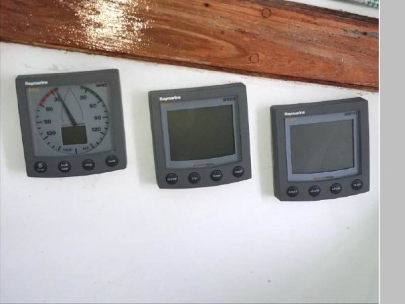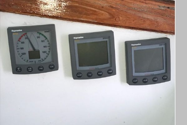 Raymarine ST60 Gauges, speed, depth and wind on bulkhead.