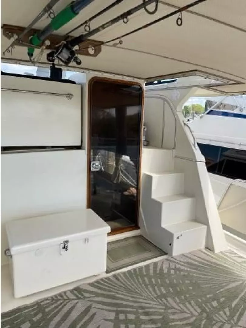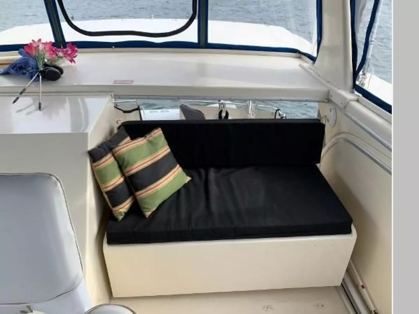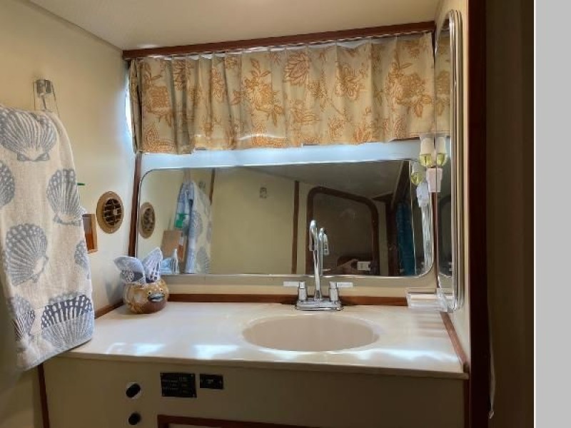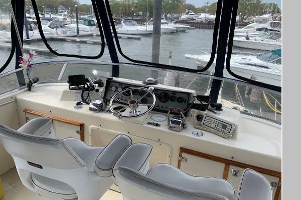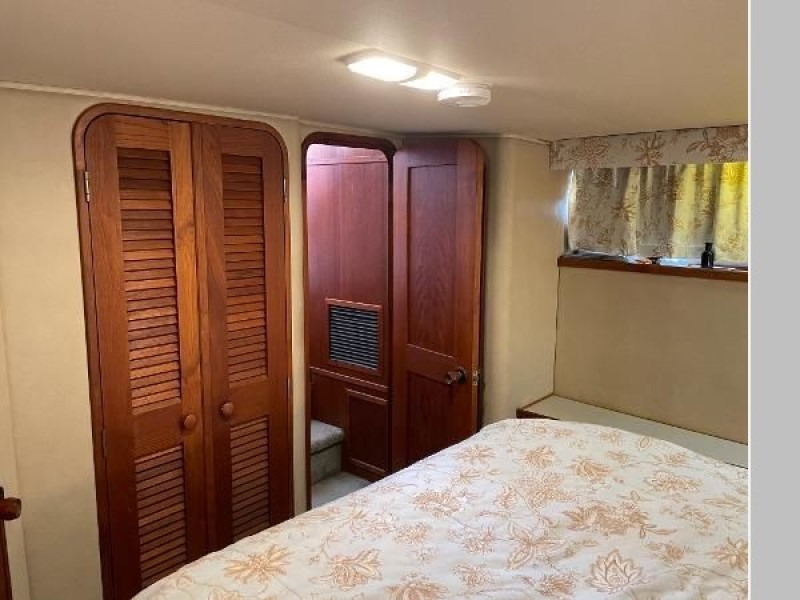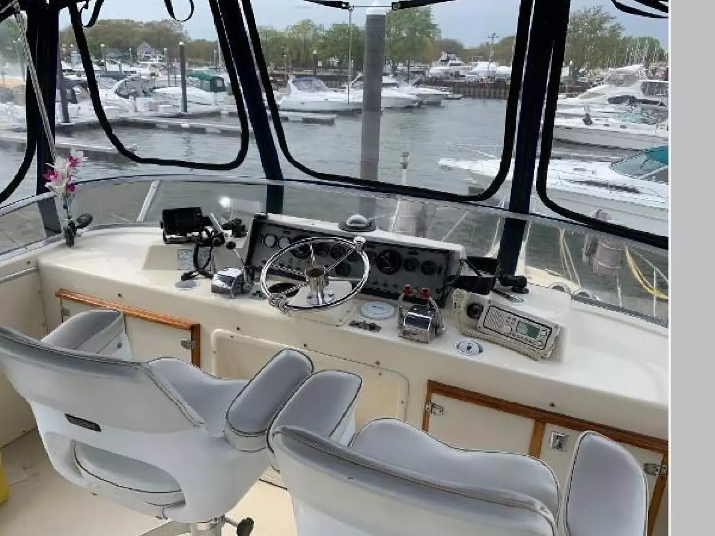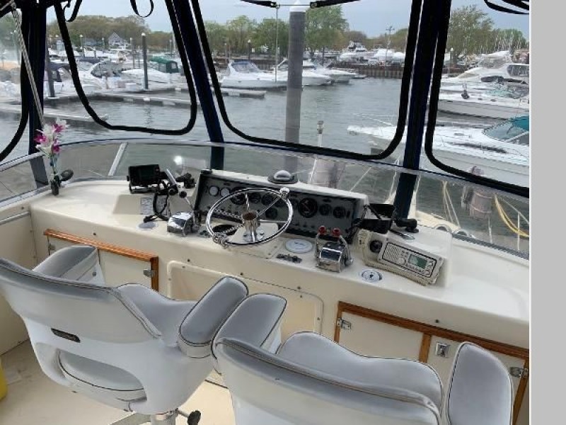 Very clean with low hour Cat Diesel 3208TA's, 8KW Onan Generator, 2 staterooms, 2 heads, 3 zone air conditioning, full bridge enclosure, upgraded electronics, hard top over aft deck, St. Croix Davits and in turn key condition ready to cruise. An ideal live aboard cruiser that includes an exceptional summer slip at an upscale Rhode Island Marina. Keep in mind that vessels berthed in RI do not pay sales or use taxes.