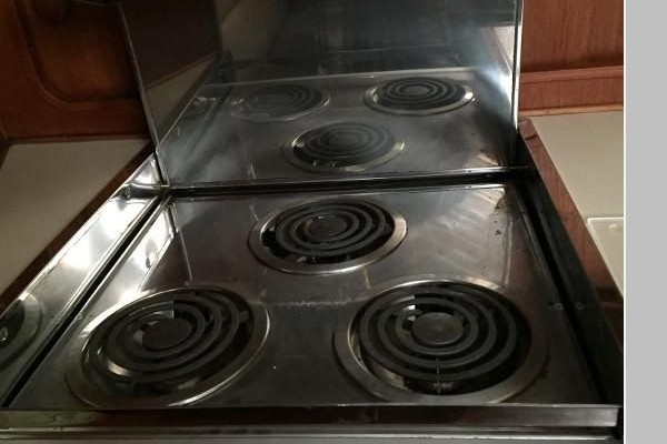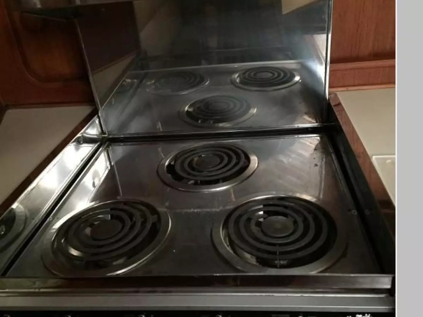 - The galley has a full size refrigerator, dual sinks, microwave, 3 burner stove with oven and rotisserie.