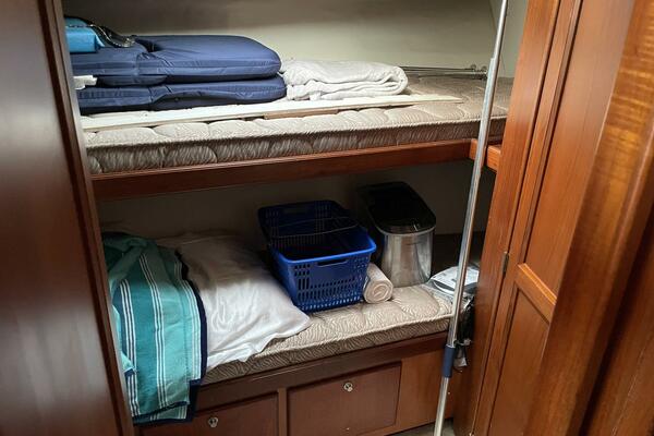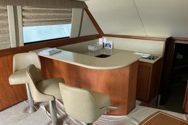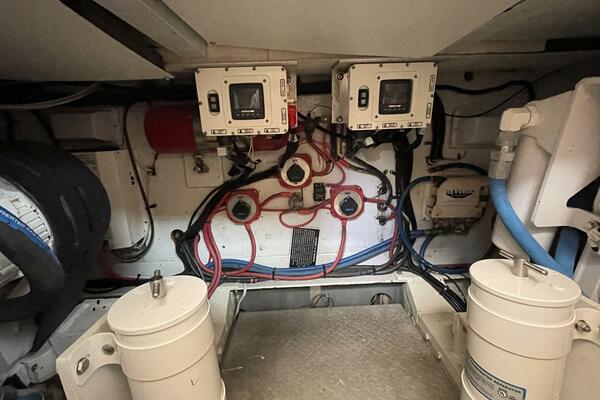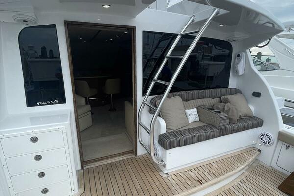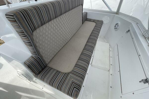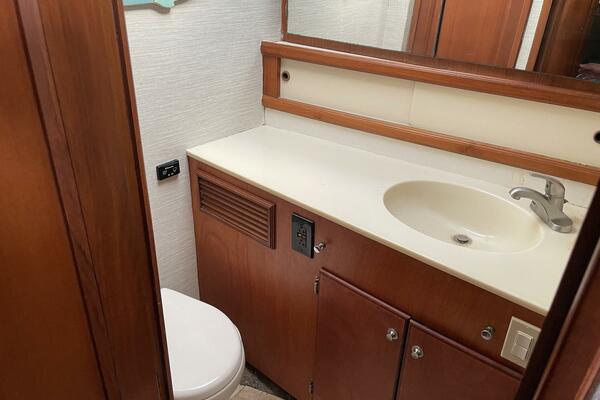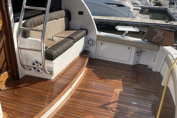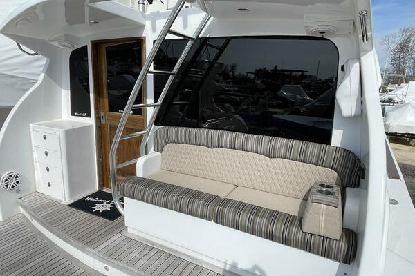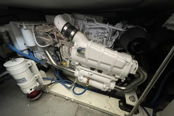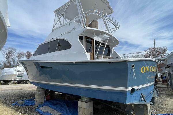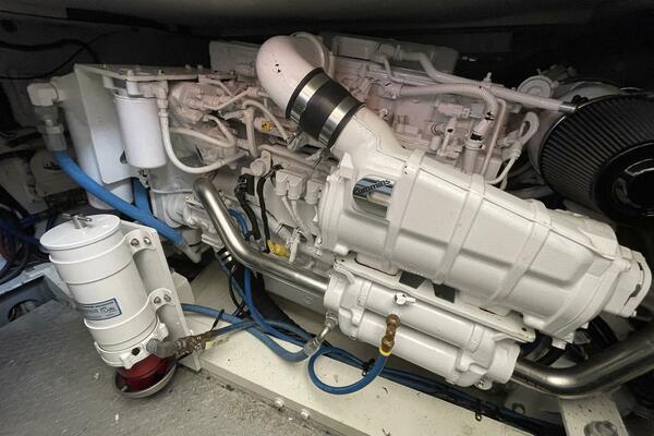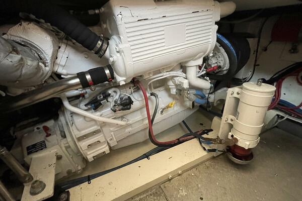 Only 4 hours on the New Cummins QSC8.3-600HO engines that are producing 600hp. Custom helm, custom cockpit with mezzanine and a recent Teak deck and an updated interior. This 41 Egg Harbor is a must see for anyone looking for a Jersey built classic. Layout features a spacious salon with the galley a step down and to port, two staterooms and single head.