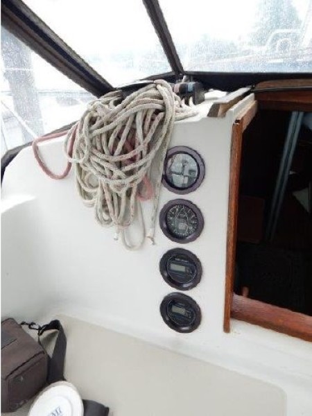There are 7 opening ports and 4 fixed lights with curtains, 3 overhead hatches and dorade boxes for ventilation.