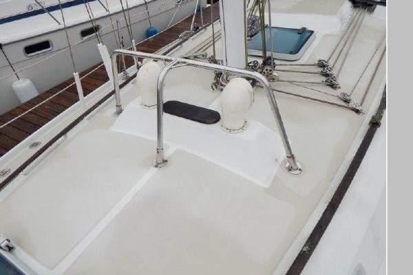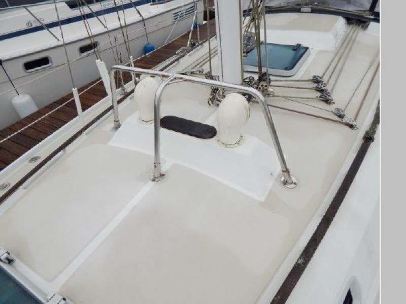 The sole is teak and holly, teak bulkheads and joiner work finish the interior.