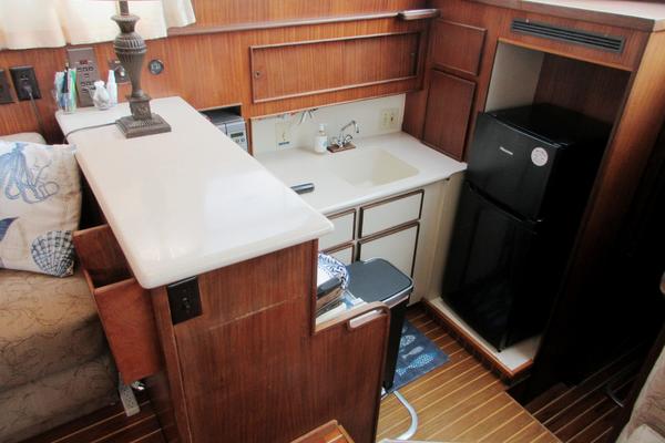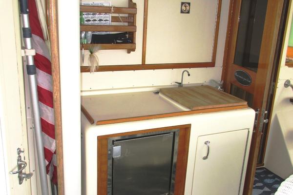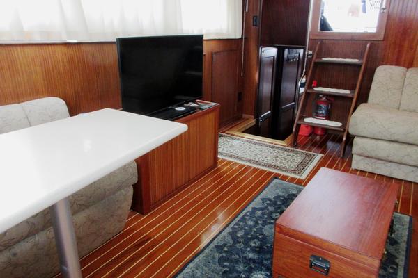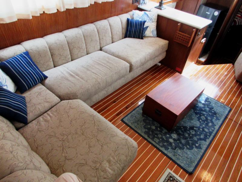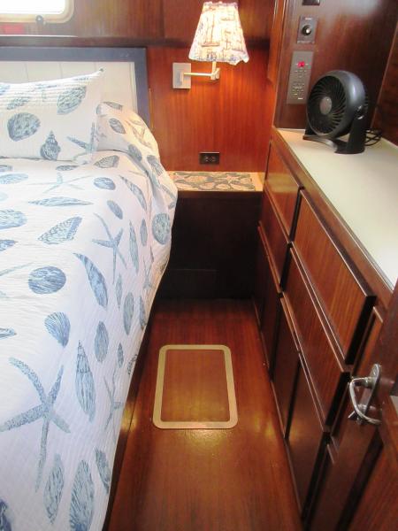 - Custom 1/4" thick solid Cherry tongue & grove bead board installed aft in the Salon w/ varnish finish (note: this is in lieu of the standard mirror)