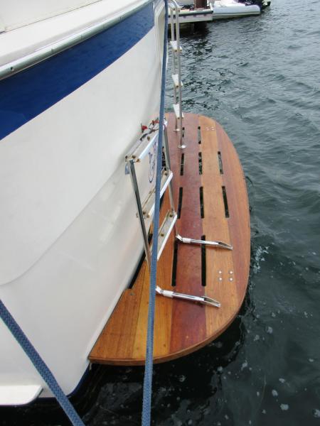 - Swim Platform, custom MAHOGANY (note: new 2020 w/ total 2" thickness w/ (2x 1" sections, WHITE OAK end cap trim, sealed w/ tung oil)