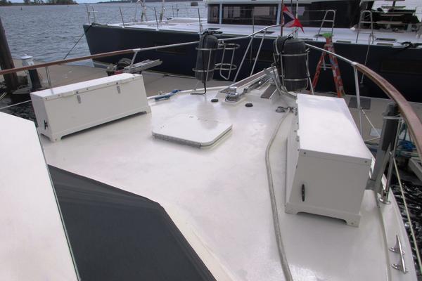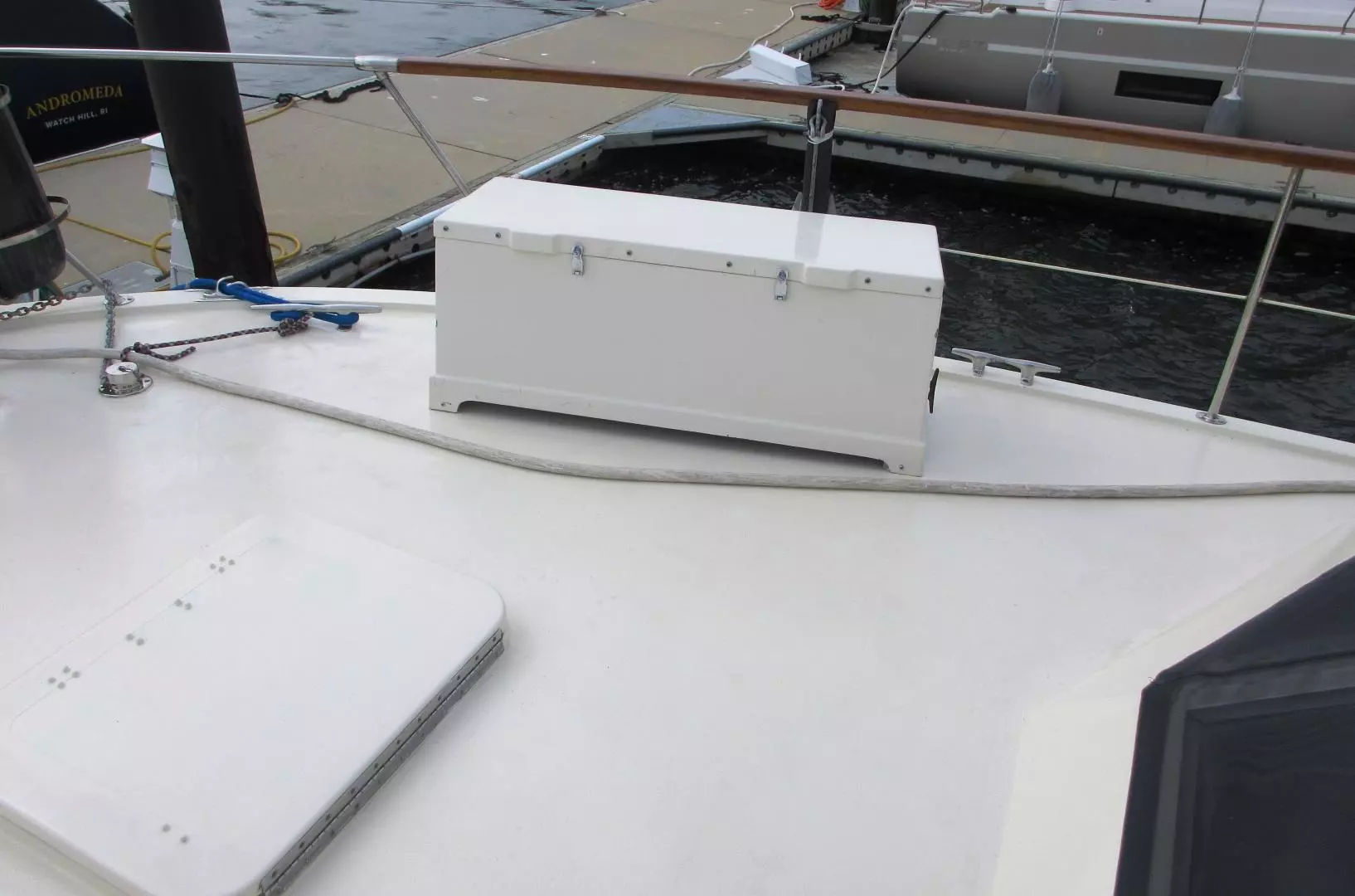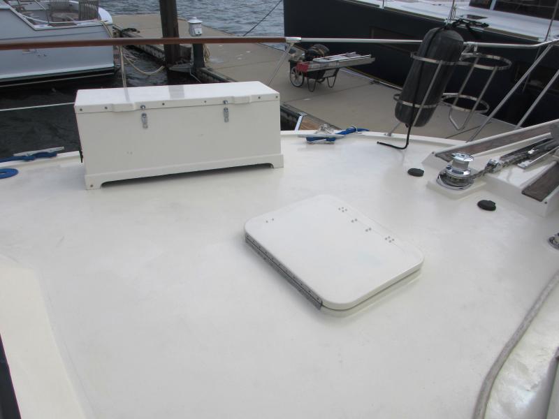 - Anchor rode fall access to rope locker, stainless steel (note: for 2nd anchor forward)