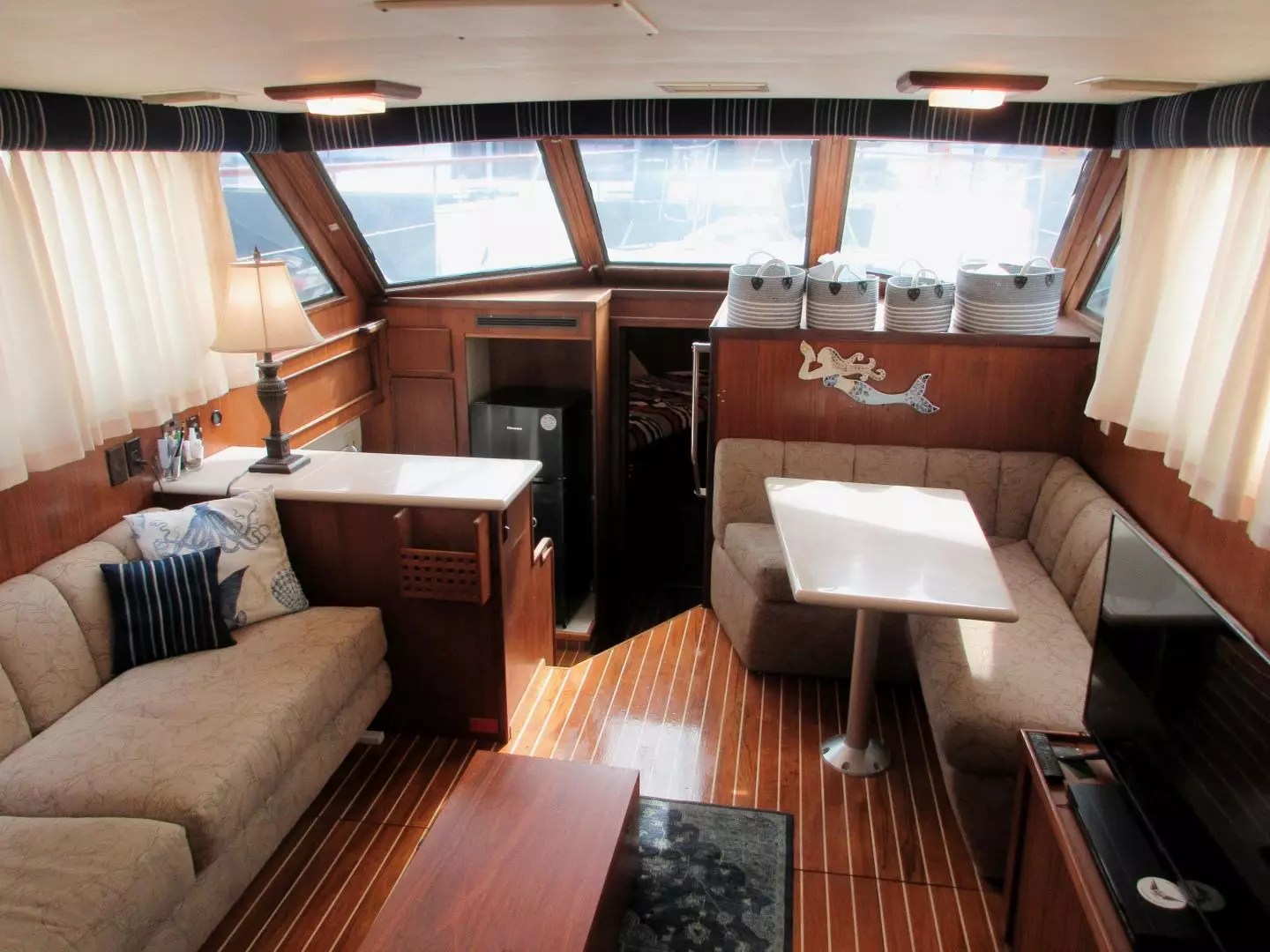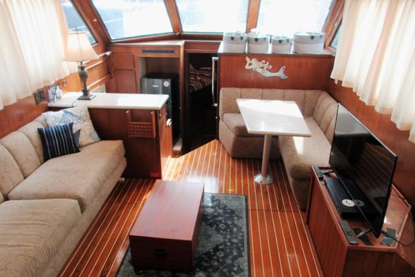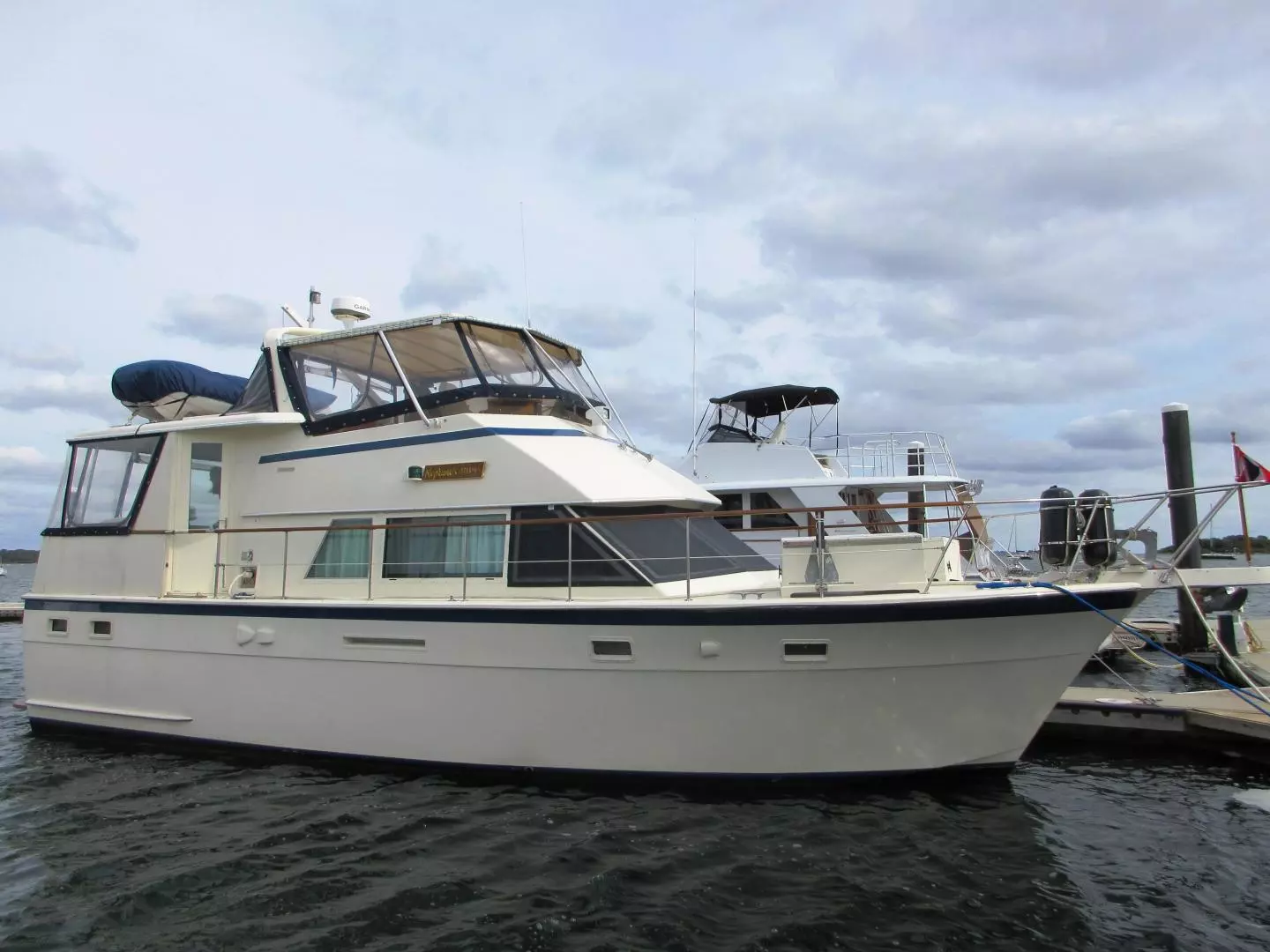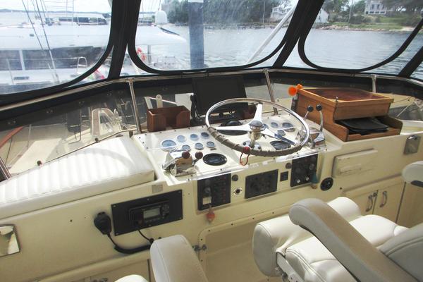 The HATTERAS 43 Motor Yacht is equipped with both a 12VDC Ship's Service and 120VAC Shore Power Systems.