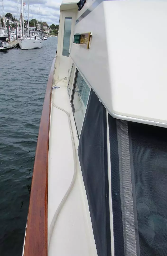 - Safety rails, stainless steel & extend aft to Aft Deck Entrance doors (note: 30" high from deck to top of teak hand-rail)