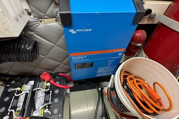 Victron 3000W inverter/charger (9/2023) powering galley, dinette, pilothouse & salon outlets + fridge/microwave